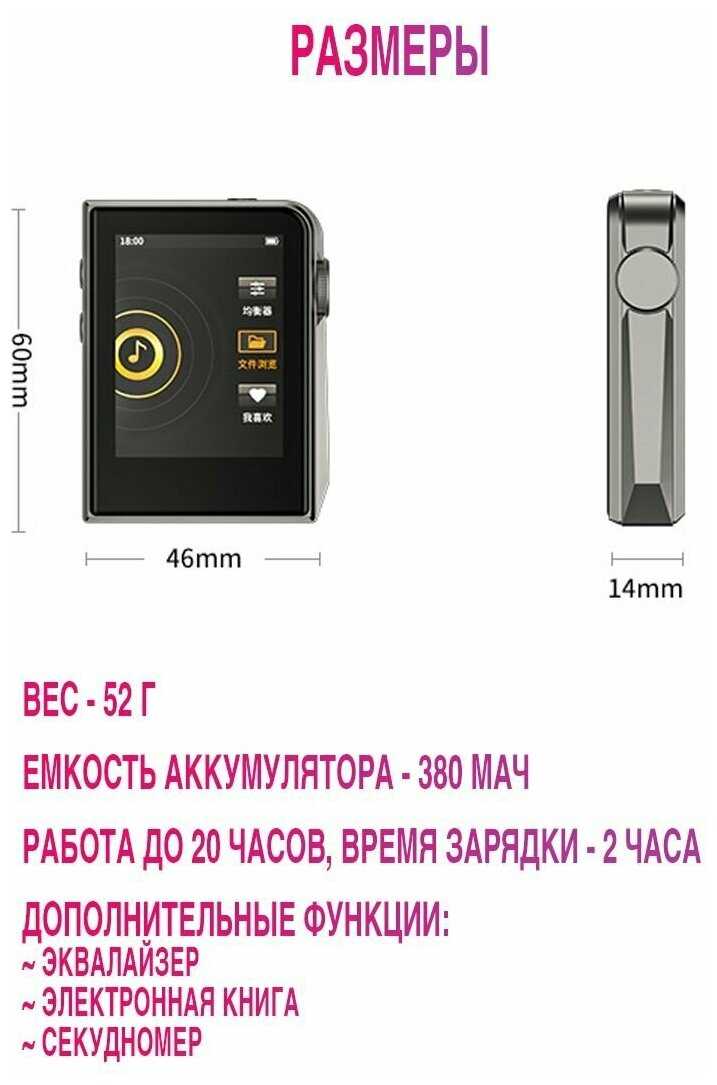 В целом на вид удобный плеер. Перевод немного кривой. Неудобно листать плейлист, приходится просто зажимать стрелки, у меня более тысячи песен, и чтобы пролистать к середине, ушла минута. 4к для него дороговато, брал из-за компактности