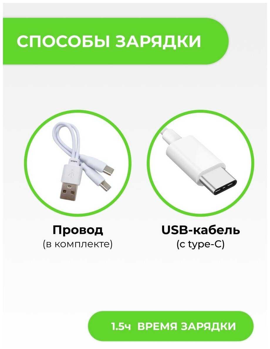 Особенности : | встроенная зарядка от USB, зарядное устройство в комплекте, индикатор заряда |