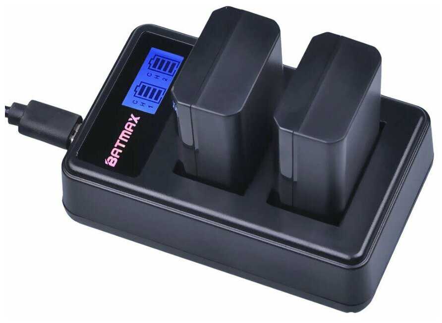 - + Отличная зарядка. и в комплекте 2 аккумулятора. работает отлично.