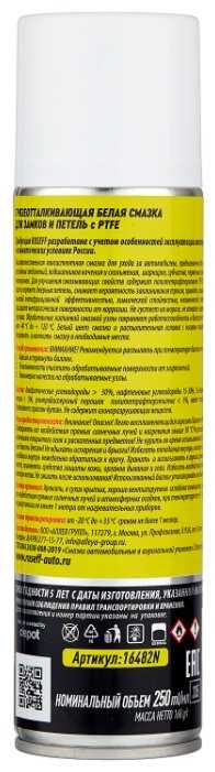 Характеристи RUSEFF Грязеотталкивающая белая для замков и петель с PTFE