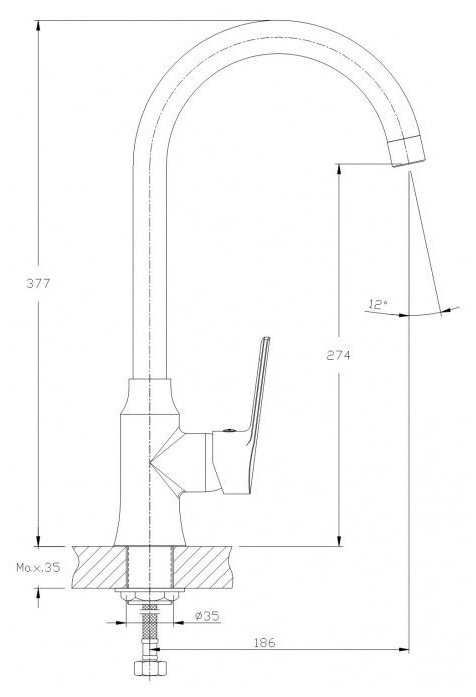 - + Высокий смеситель, полукруглый кран.