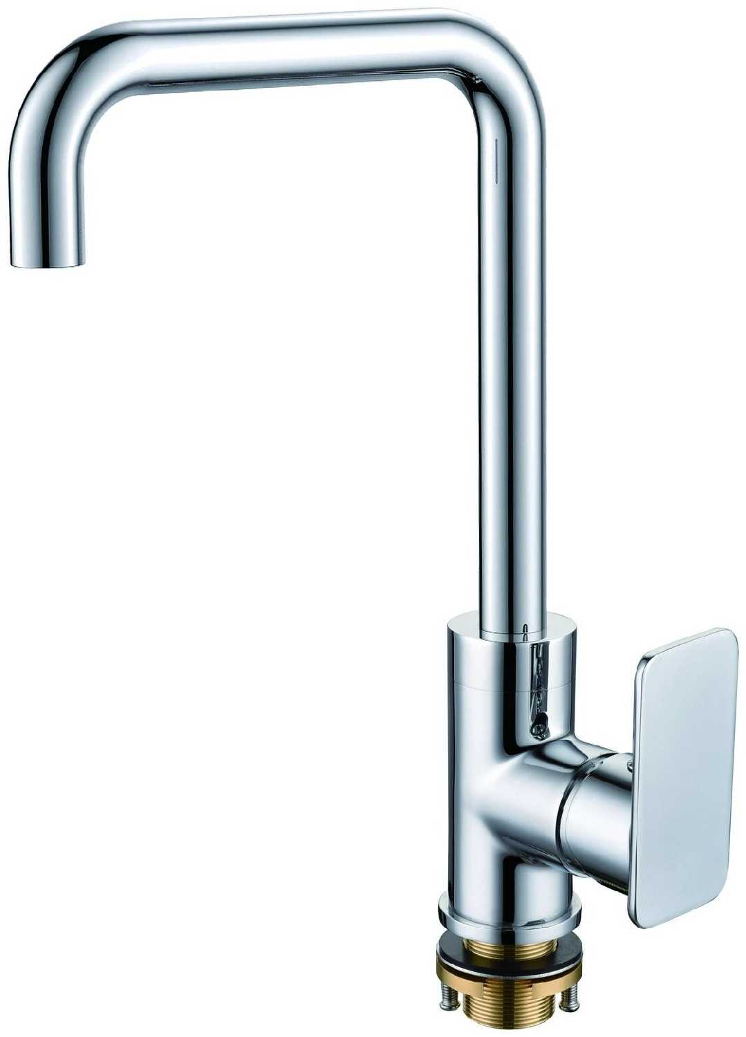 Смеситель очень удобный, прямоугольный, один рычаг для того чтобы менять температуру, включать и выключать напор воды. Пользоваться нравится...