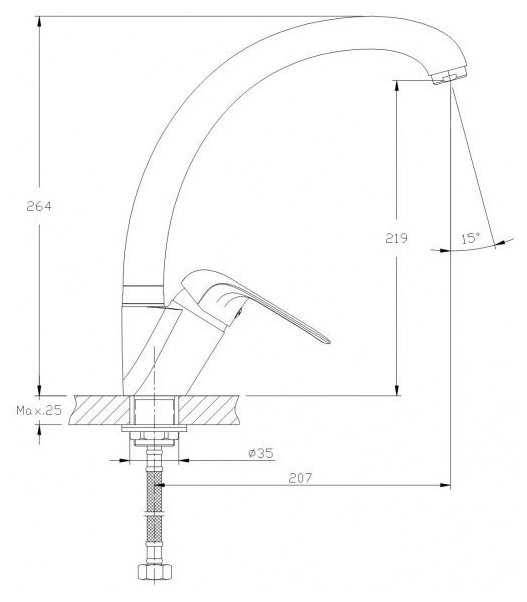 Отличный смеситель. Удобный, комфортный, с поворотным изливом, с высоким краном. Управление через рычаг, он располагается снизу, а не сбоку - это то что нам было нужно.
