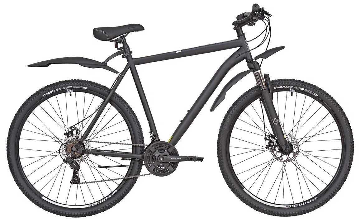 - Предустановленные настройки трансмиссии (Shimano Tourney) и дисковых тормозов позволяют начать эксплуатацию сразу после сборки.