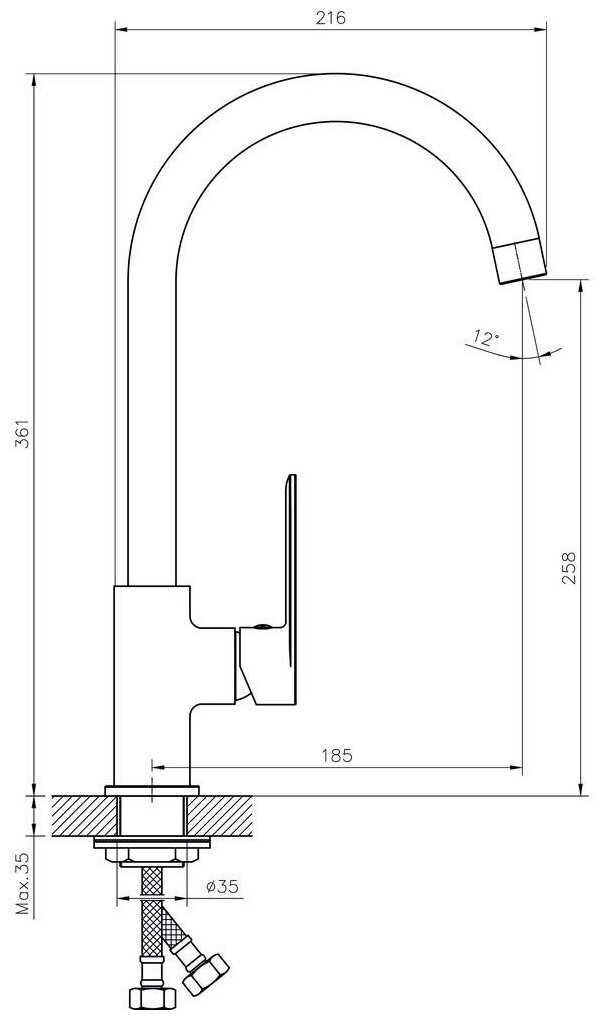 Нормальный смеситель для кухни, удобно переключать температуру, рычажок находится справа, можно переключить и повернуть температуру...