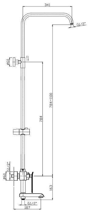 | Высота стойки для душа : | 1100 мм |