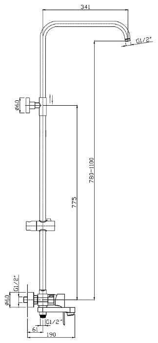 | Комплектация : | верхний душ, держатель лейки, душевая стойка, лейка, смеситель, шланг |