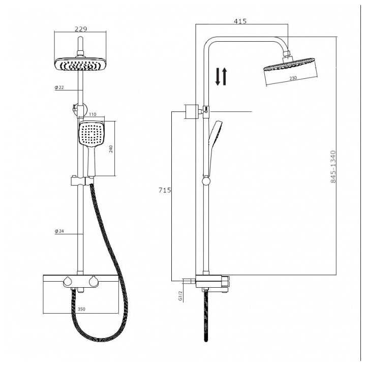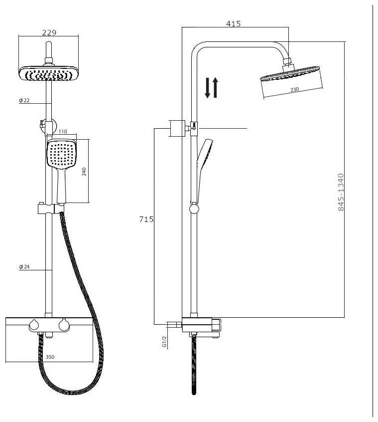 | Дополнительная информация : | высота стойки для душа: 1100 мм, диаметр душевой лейки: 120 мм, диаметр верхнего душа: 200 мм, выбор формы лейки не предоставляется |