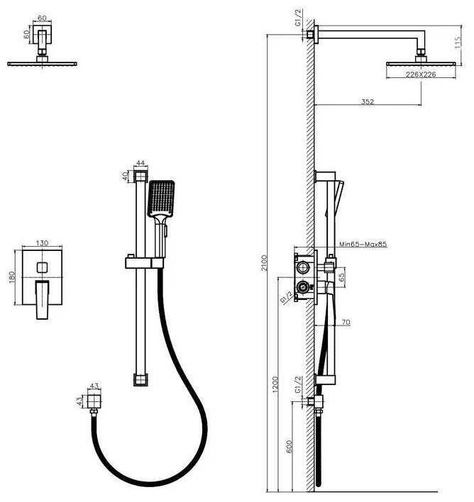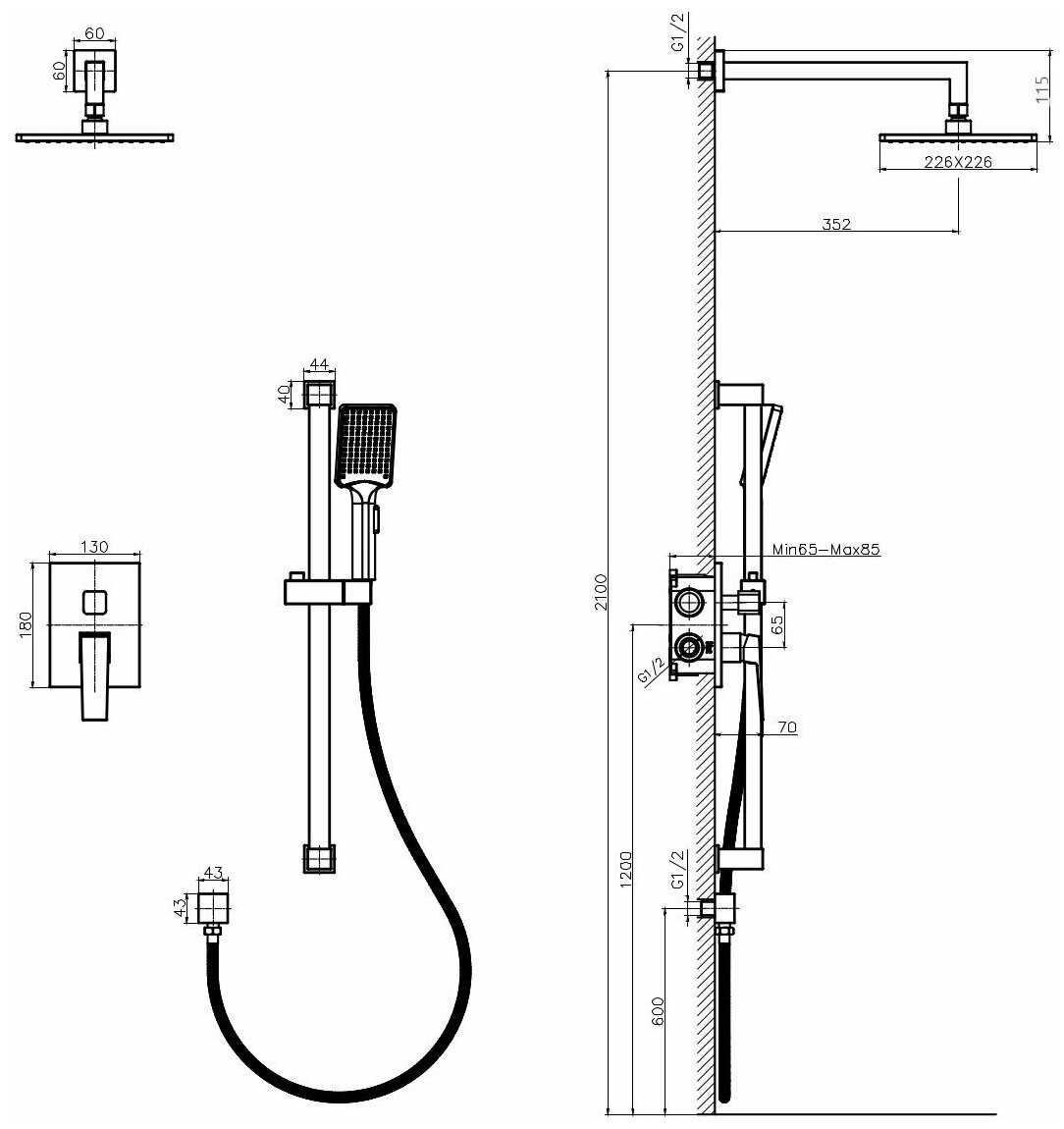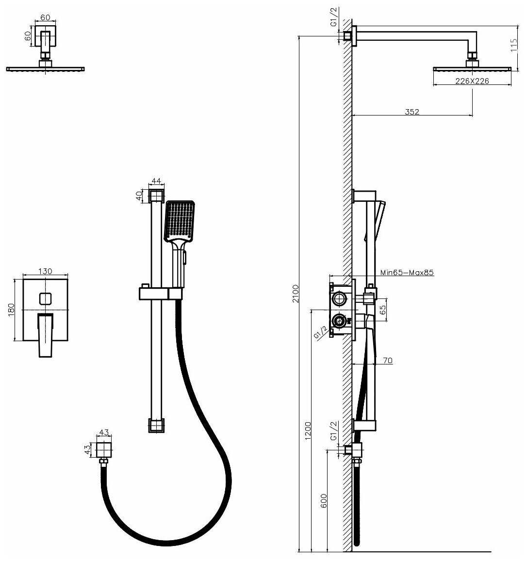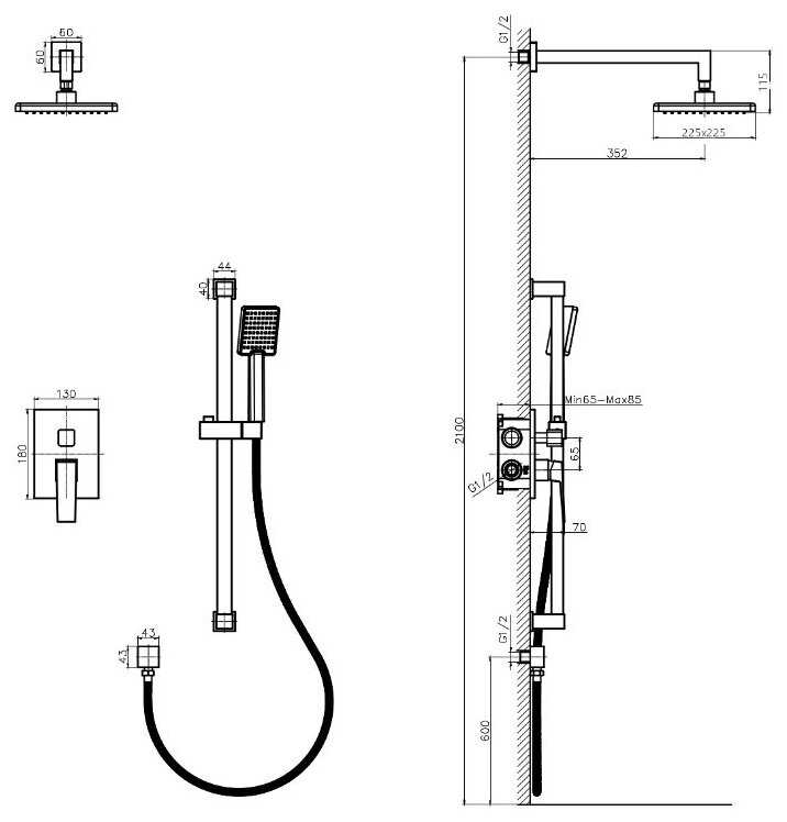 верхний душ, дивертор, душевая стойка, душевая штанга, излив для набора воды, лейка, ручной душ, смеситель, шланг