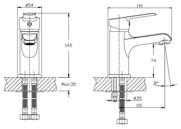 У нас во втором санузле стоит маленький умывальник размером 40x20. Такой смеситель как раз для неё подходит идеально. У него хороший внешний вид, он очень маленький, компактный, удобный, им легко управлять. Поставили его супер быстро. Ставили ребята, которые делали ремонт. Но для них это не в новинку, хорошо разобрались во всём.