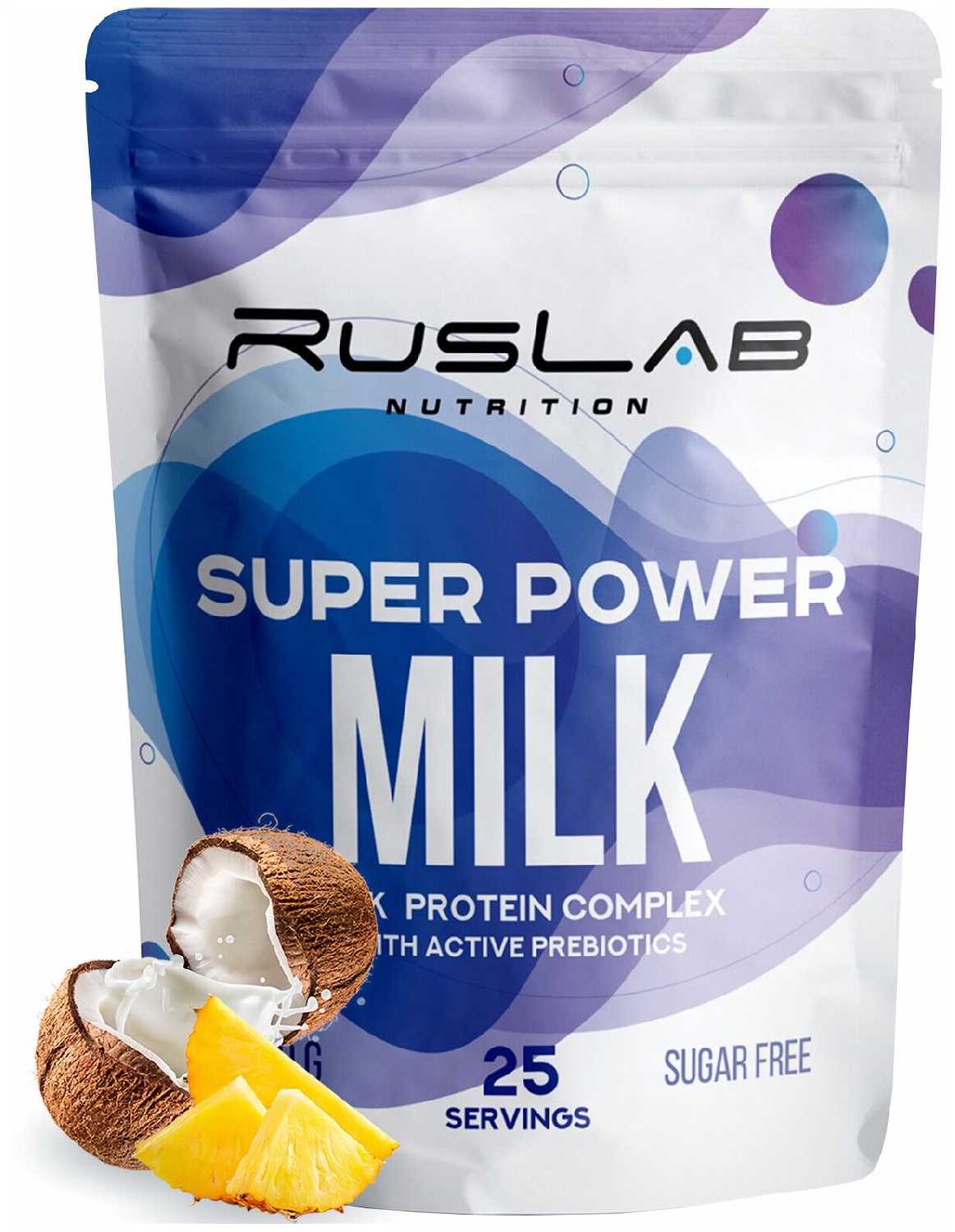Характеристи RusLabNutrition Казеиновый протеин SUPER POWER MILK,белковый коктейль (800 гр),вкус пина колада
