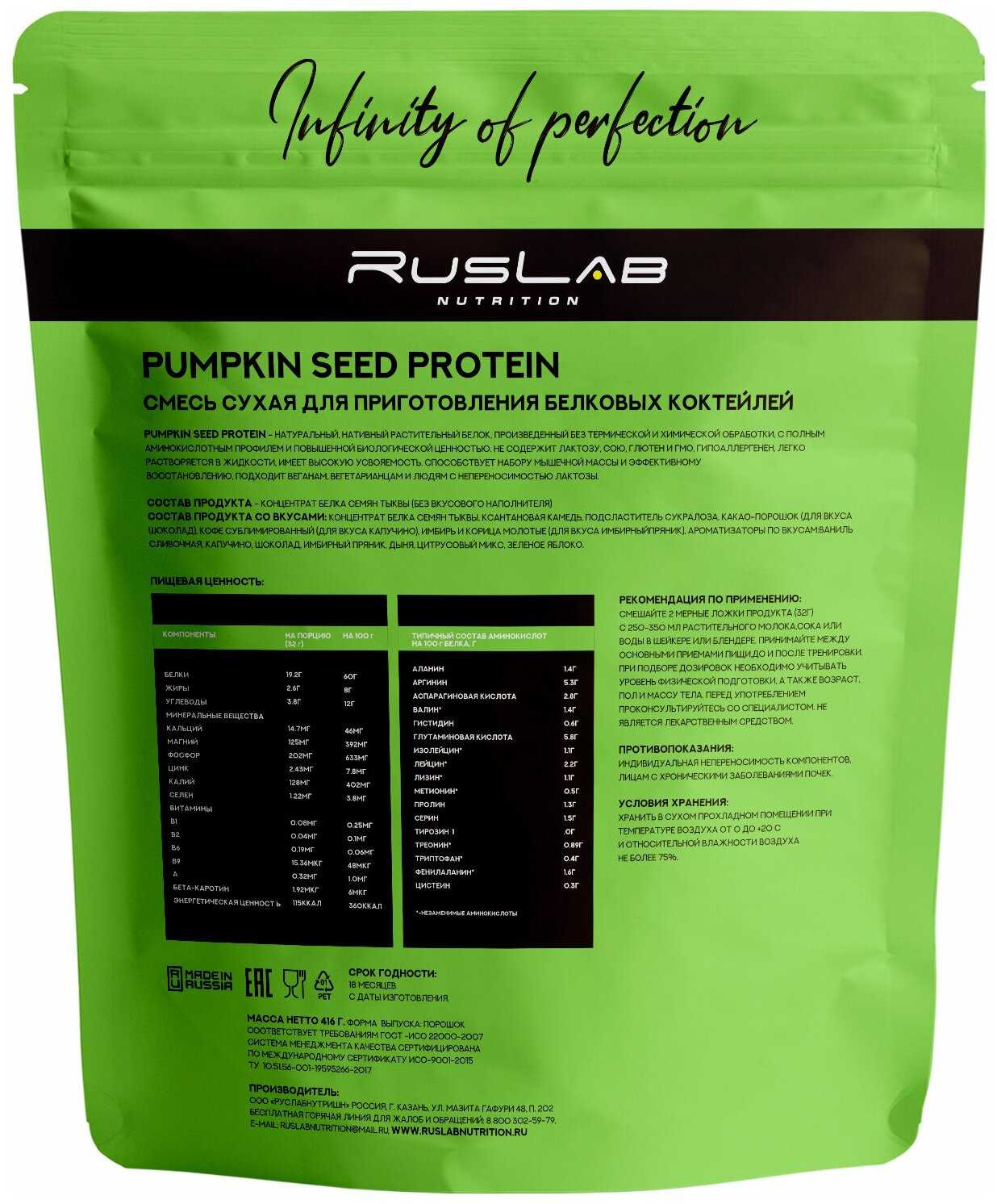 Лучшие цены сегодня на RusLabNutrition PUMPKIN SEED PROTEIN