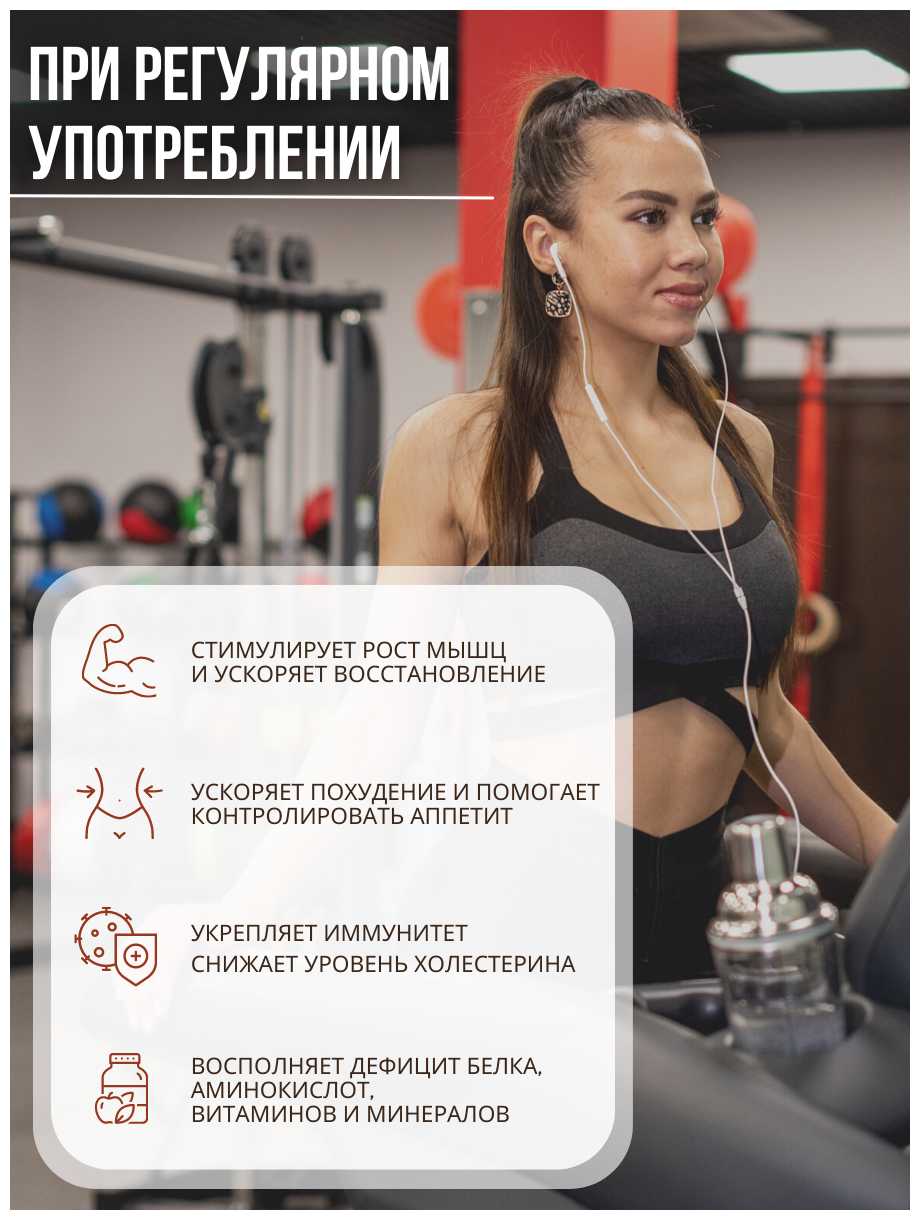 - Высокое содержание белка (до 60 г на 100 г продукта) дополнено витаминами группы B и микроэлементами (цинк, магний).