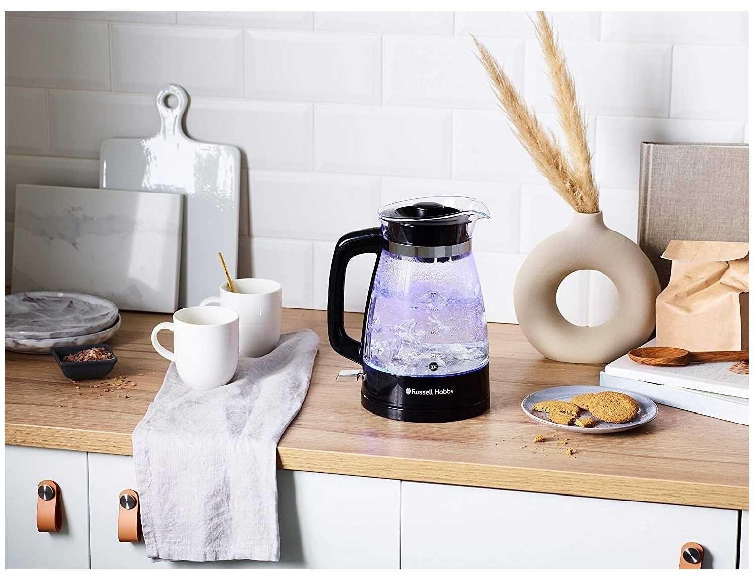 Чайник понравился своей формой, необычная она. Стекло плотное, сразу видно, не дешевое какое-нибудь. Корпус дополняется плотным пластиков, во время работы он не нагревается. Подсветка мягко-голубого цвета, приятная для глаз. Нагревается вода быстро, за минуты 4-5. Есть функция защиты от нагрева без воды). Как снимаешь чайник с подставки, он автоматически отключается. Длина провода нормлаьная - 1-1,5 метра, не будет проблем с использованием. Доп гарантия на 1 год - как преимущество