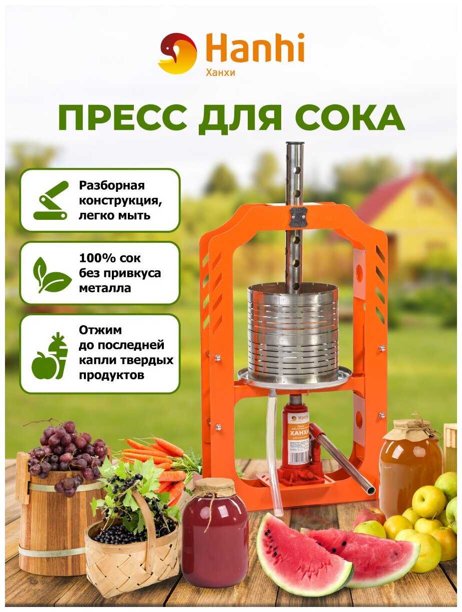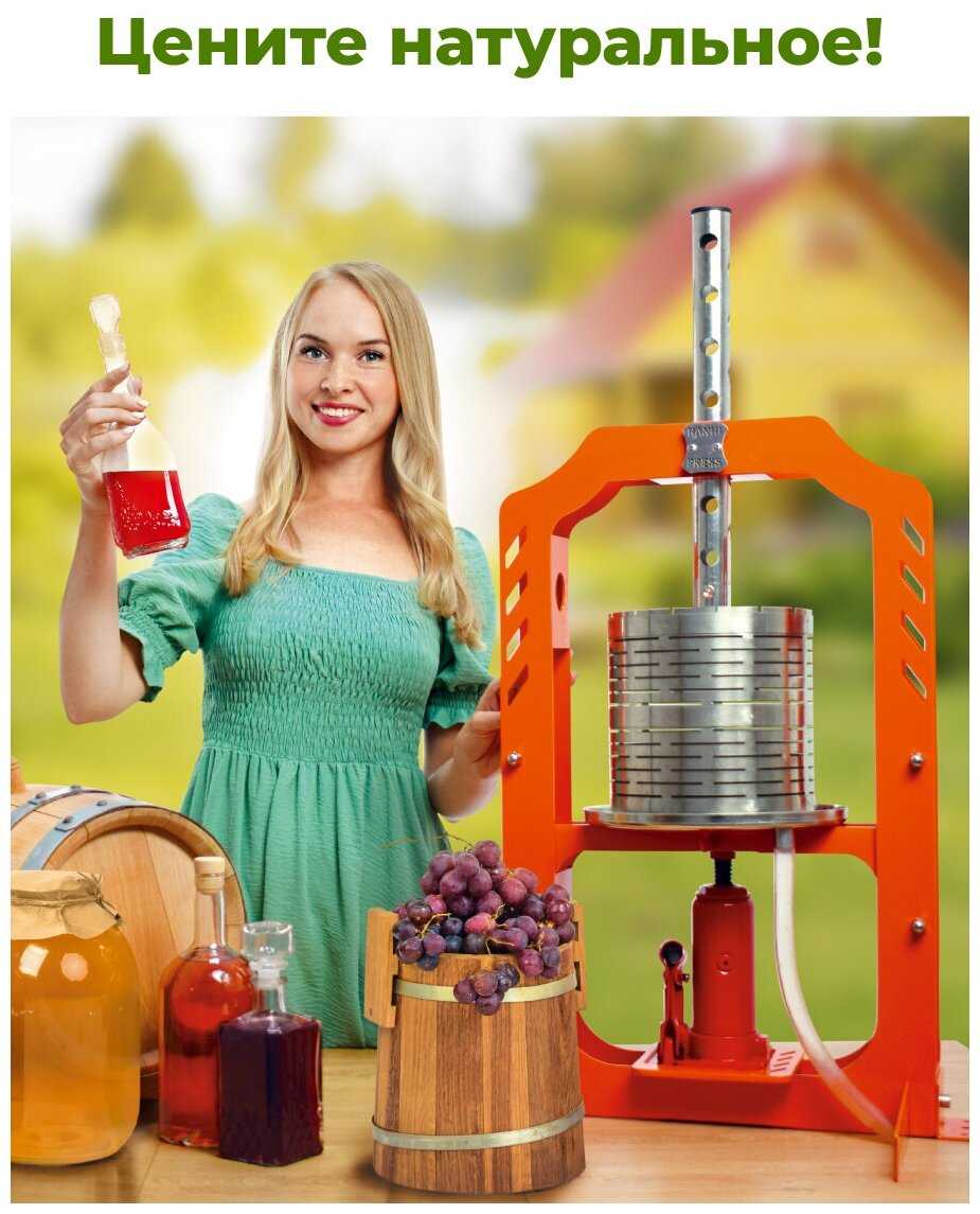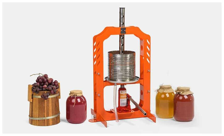 - + Сделан добротно, после трех примененийзамечаний нет. Каждое применение-это около 40 прессований гидропрессом. Для яблок предварительно размельчал в электромясорубке. В таком варианте отжим в прессе с большим выходом сока и малым сухим остатком жмыха. Отжимал каждую порцию по 7-8 раз(как рекомендуется инструкцией). Виноград также предварительно раздавливал толкушкой. Пресс дает лучший выход сока и меньше трудозатрат, чем отжим вручную. Также есть возможность использовать домкрат(снимается свободно) отдельно для других хозяйских целей - усилие 5 тн.