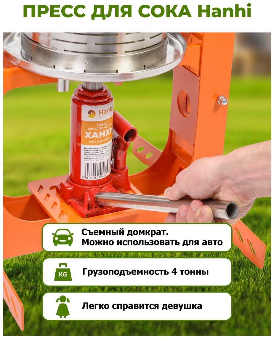 - - заявленные 6 л. жмыха не выжимает. отжим происходит сверху и снизу, а по середине остаётся влажный. без домкрата это просто кусок железа. позиционирование пресса, как лёгкий в работе, якобы для женщин, вызывает сомнения, потому что перемещение в разные позиции штока пресса, работа с домкратом, установка тарелки, всё это не обрадует женскую половину. для эффективного отжима я уменьшал порцию, соответственно увеличивалось время обработки сырья. мешок прострочен в два шва, один шов разошёлся на третьей порции. два ведра жмыха выжимал около двух часов. на винтовом выходило быстрее. отзыв дополню ещё.