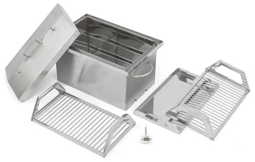 идеально входит в купленный ранее мангал. уже опробован. грудинка горячего копчения ушла на ура.