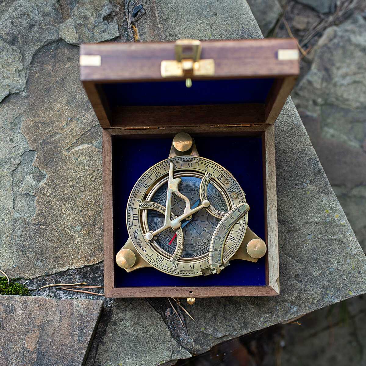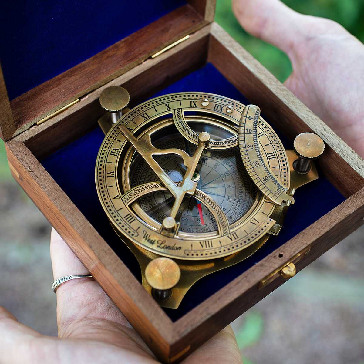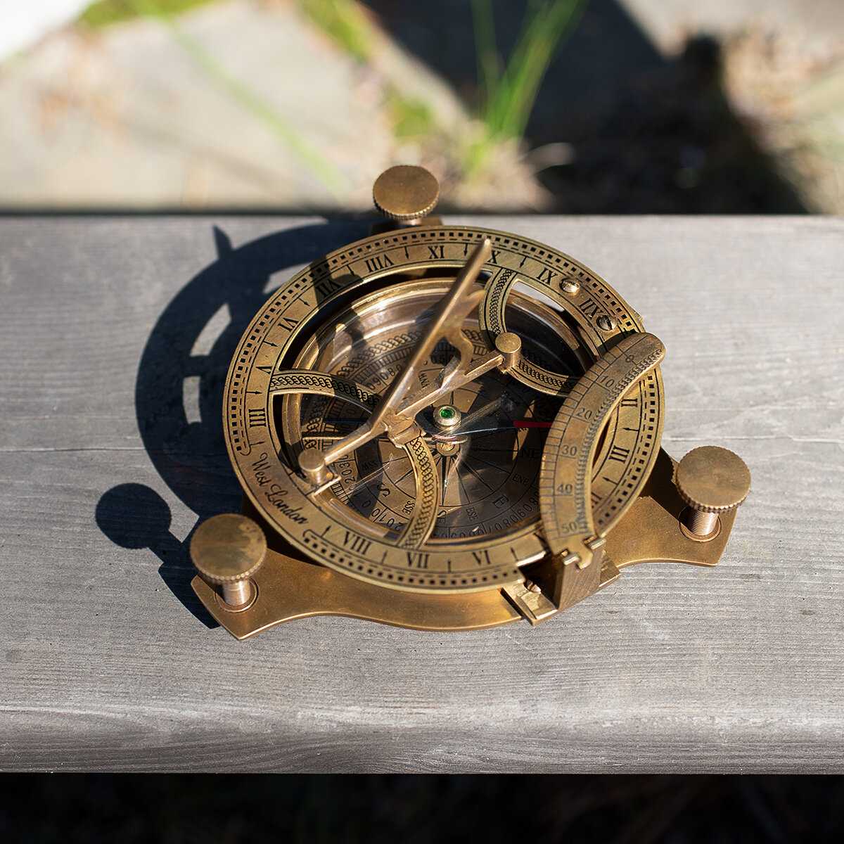 В общем это не солнечные часы. Кто рекламу оформлял не знает что такое секстант. Я бы по такому прибору, свои координаты не стал определять.
