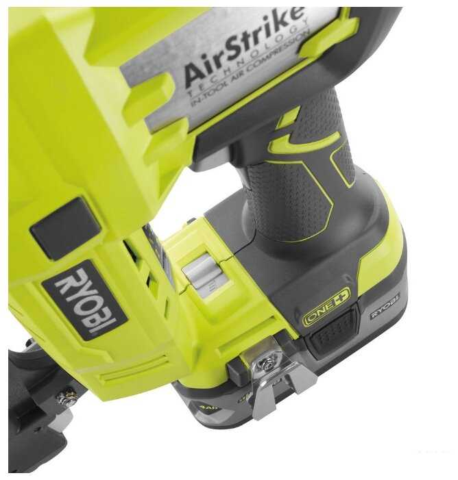 - + Забивает 50 мм гвозди. One+ один аккумулятор на все инструменты Ryobi