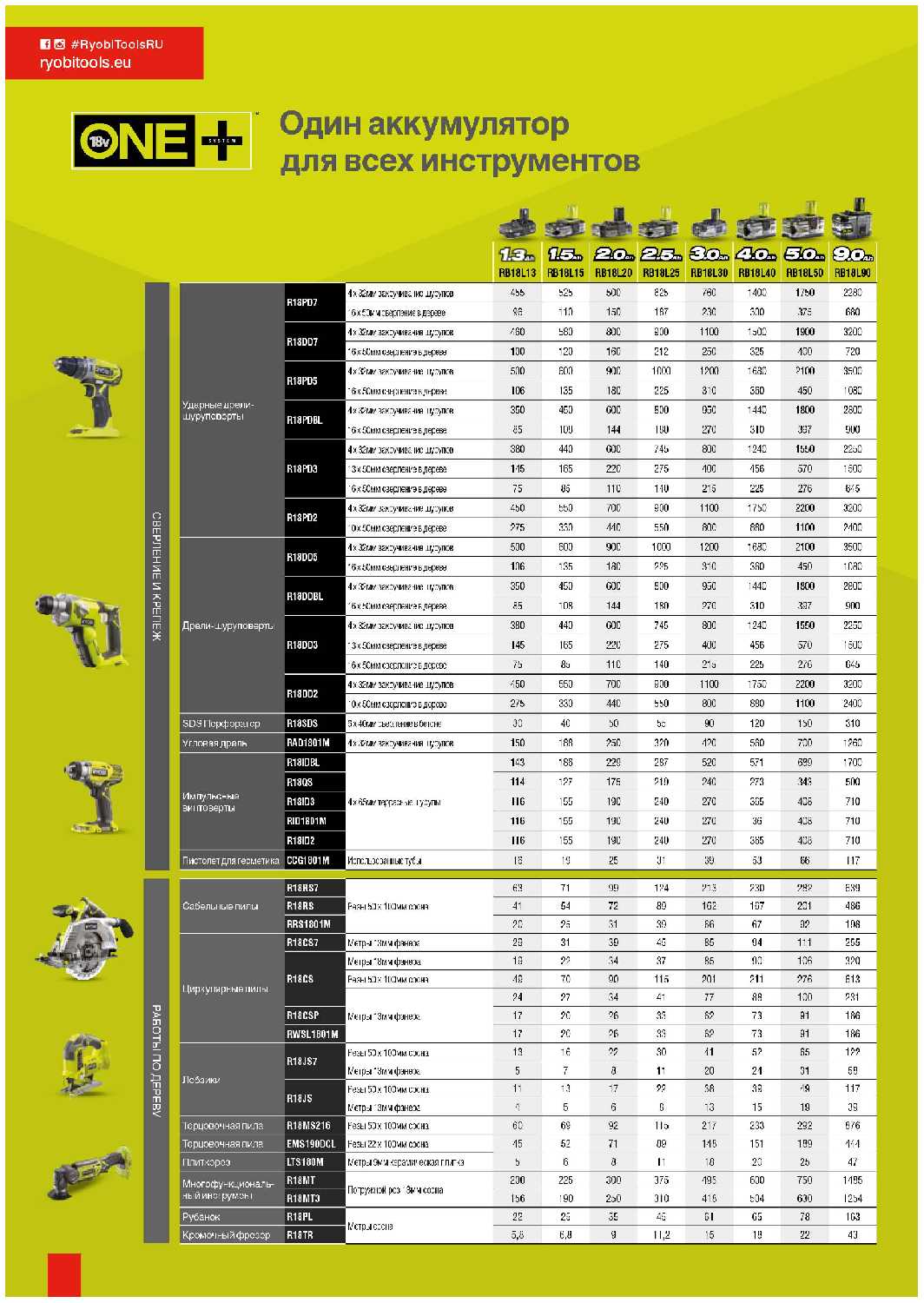 - + Отличный комплект! В наличии несколько интрументов Ryobi, меняю по мере необходимости.