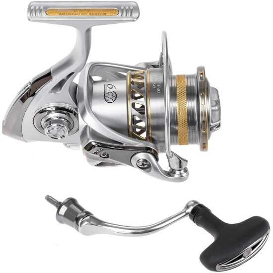 Ручка не складная, это единственный минус по удобству. Зато вкручивается легко в главную пару, проще чем в Daiwa. Держится надежно без люфтов. Подходит для тех, кому фиксированная ручка не мешает.
