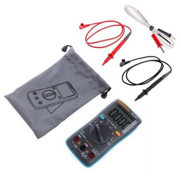 Компактный, много функций, есть подсветка дисплея, питание от пальчиковых батареек. Состав: прибор, основные провода, термопара, мешочек для хранения прибора, инструкция + переведённая инструкция на русский язык