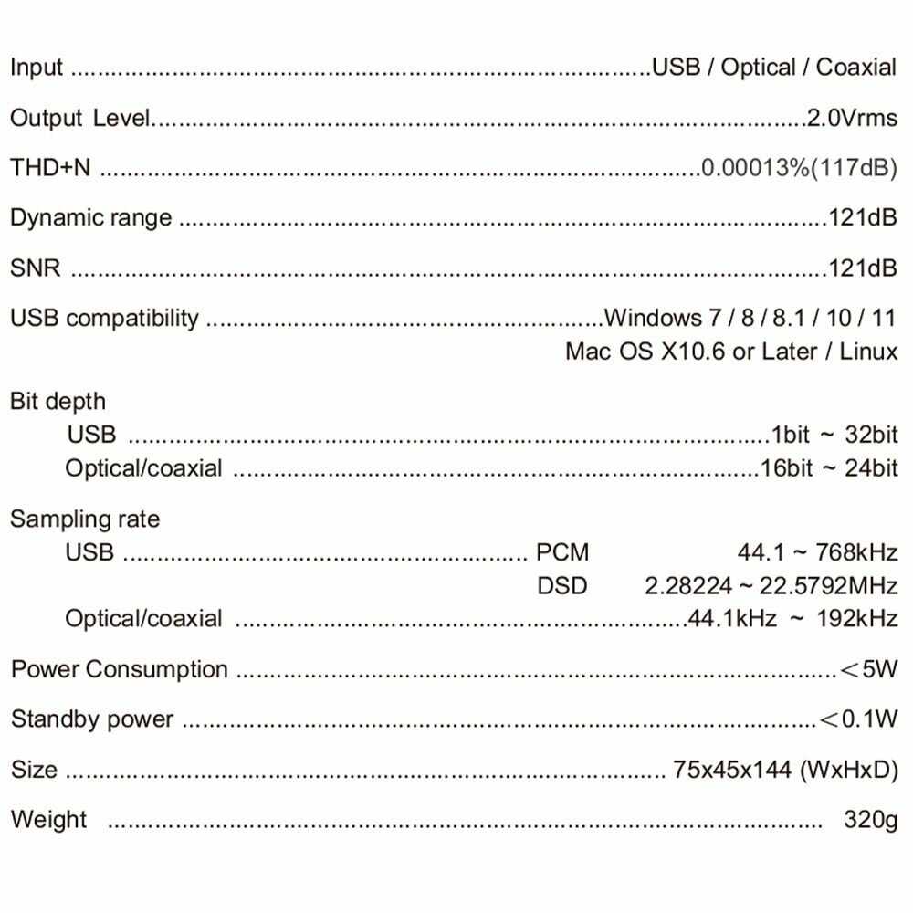 Особенности : | питание от USB, поддержка DSD, пульт ДУ |