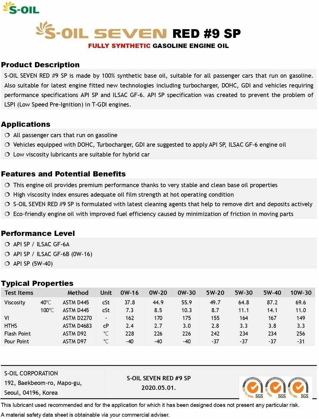Характеристи S-OIL SEVEN 0W-30 (4 л)