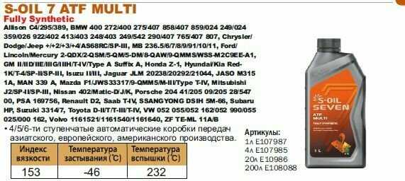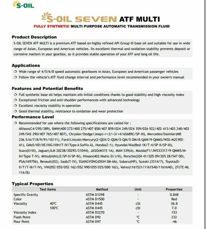 7 отзывов пользователей o S-OIL SEVEN ATF MULTI (1л)