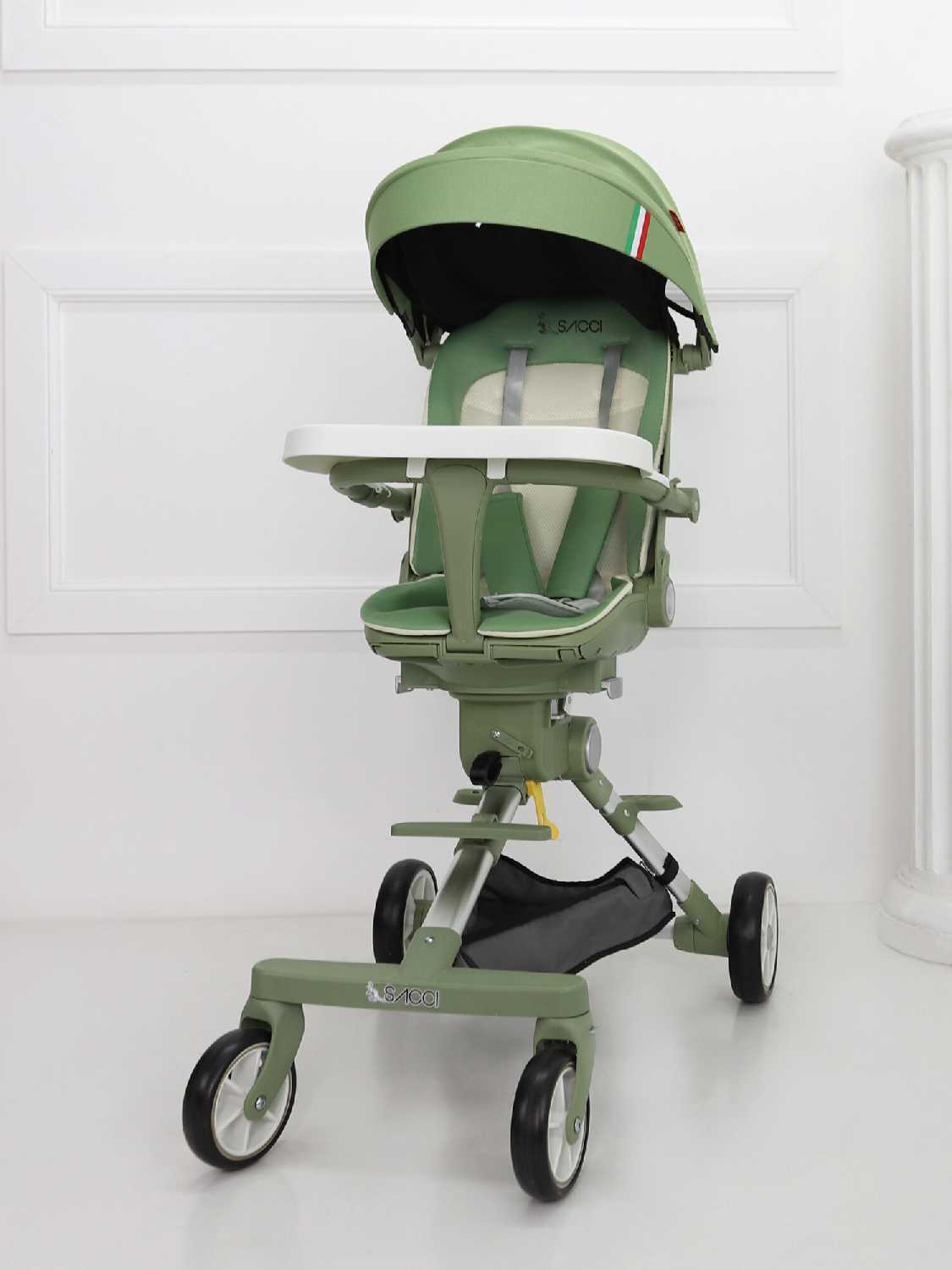 | Особенности шасси : | корзина для покупок, перестановка блока лицом/спиной, регулировка высоты ручки, ручной тормоз, ступенька для старшего ребенка, съемные колеса |