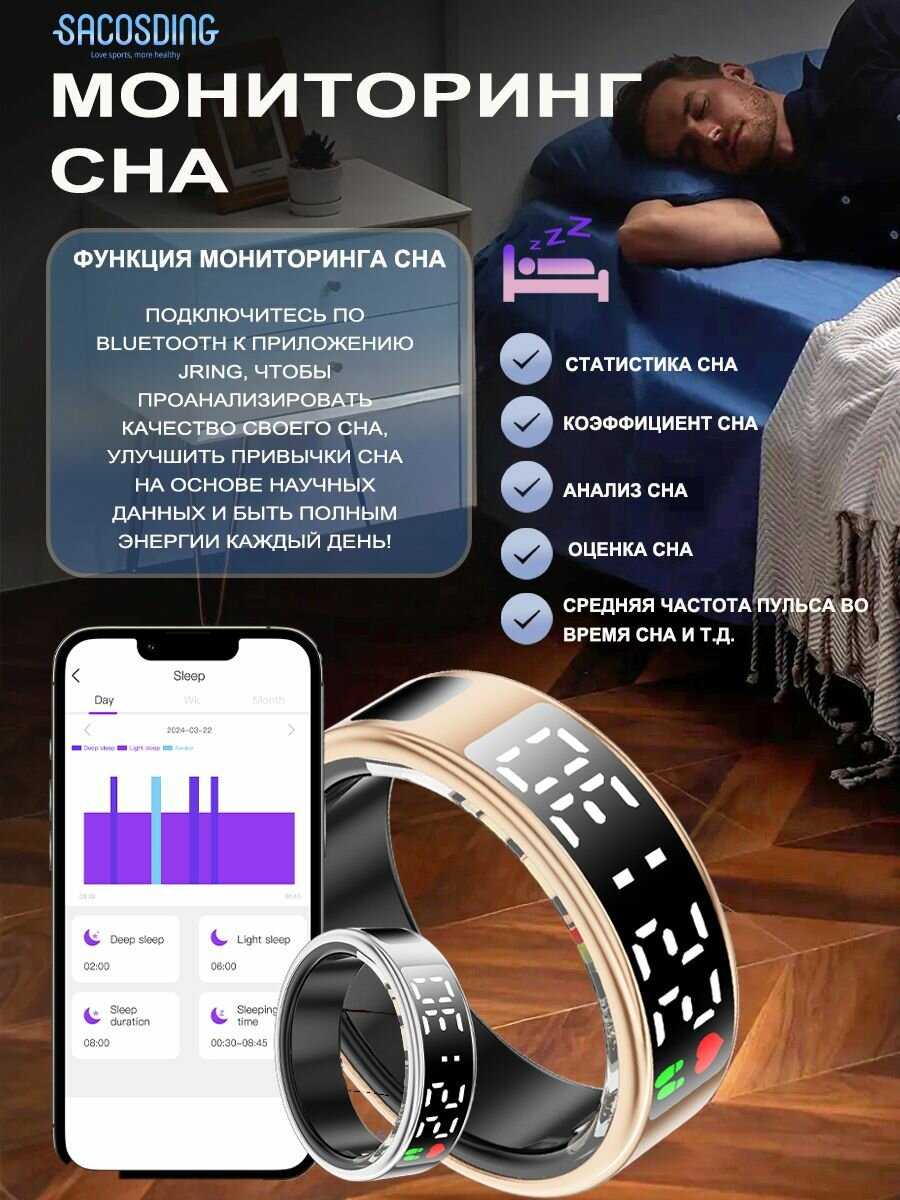 Отзывы о Умное кольцо унисекс с многофункциональным дисплеем для мониторинга сердечного ритма, кислорода в крови, сна, для системы Android IOS