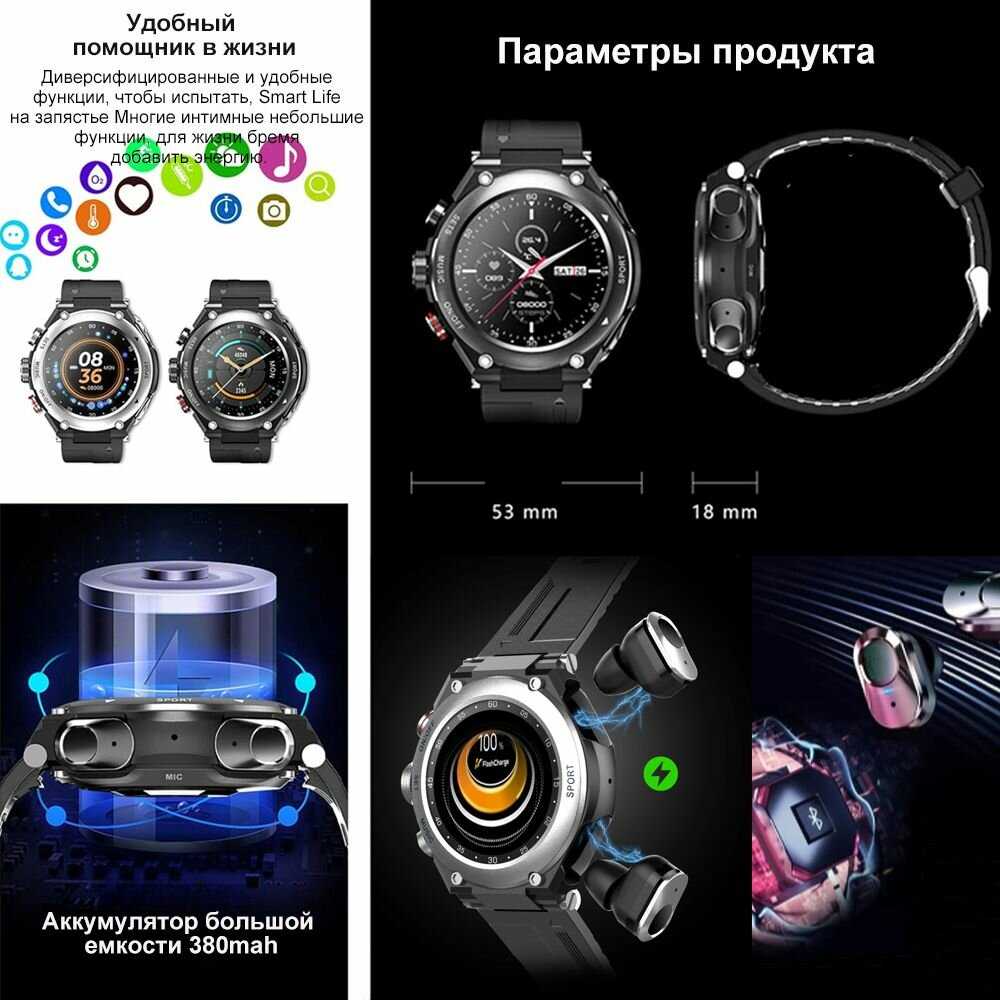 Характеристи SACOSDING Умные часы с наушниками MP3 Bluetooth (3 в 1)
