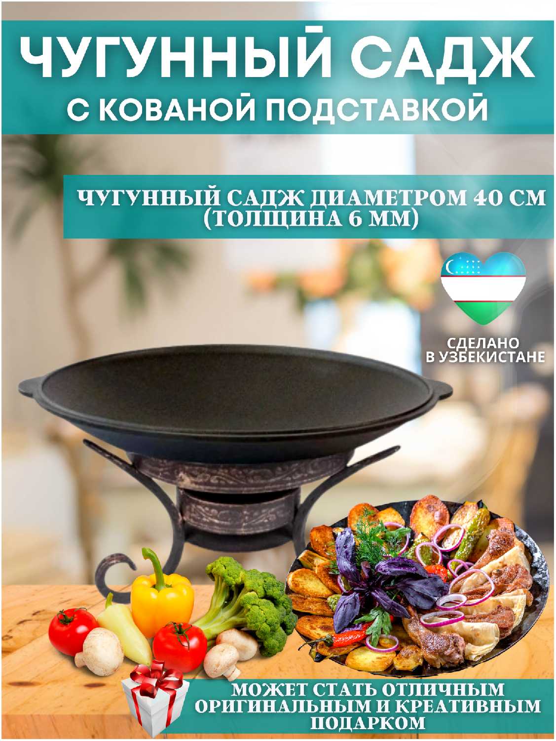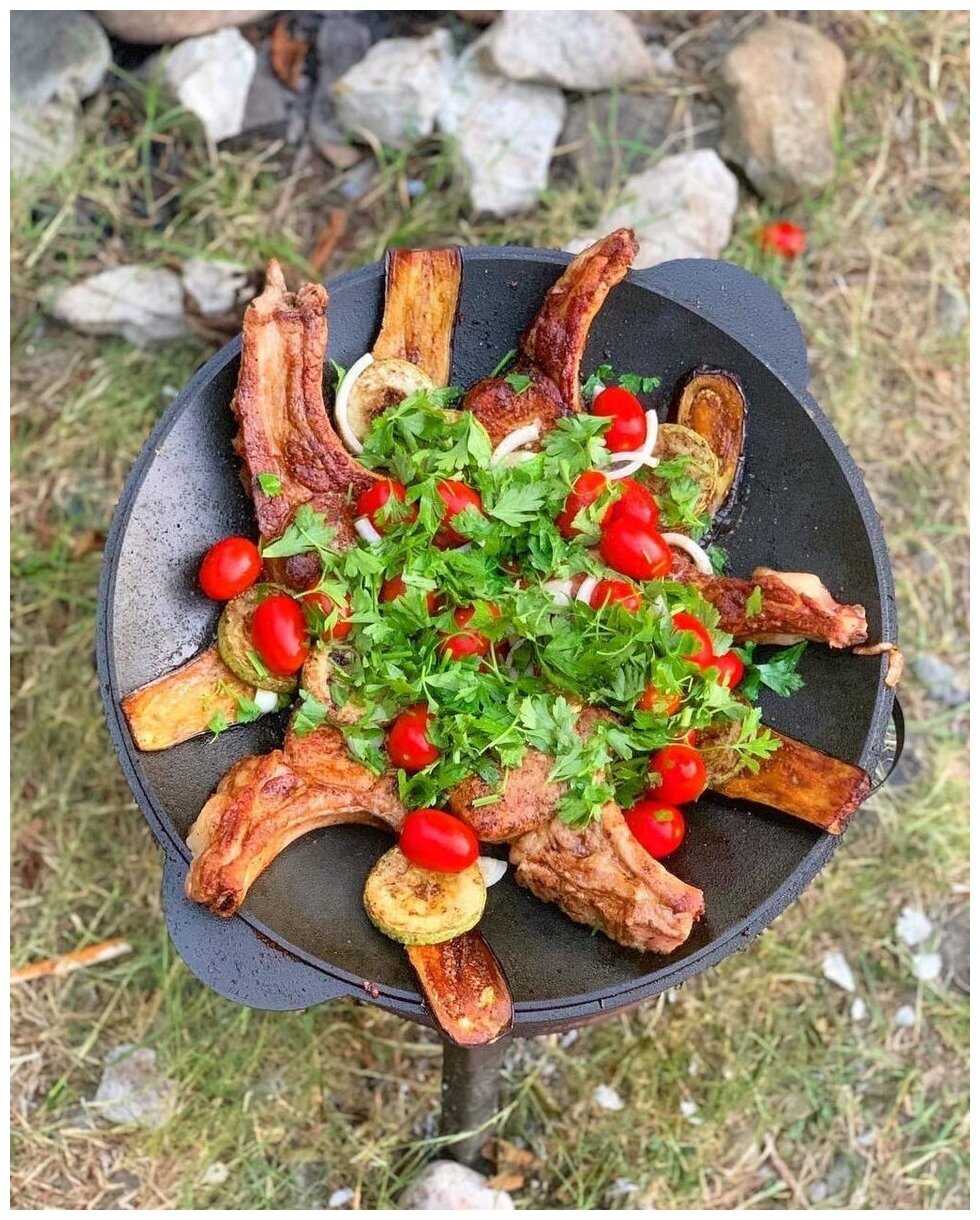 - комплектация: Сковорода - садж чугунная