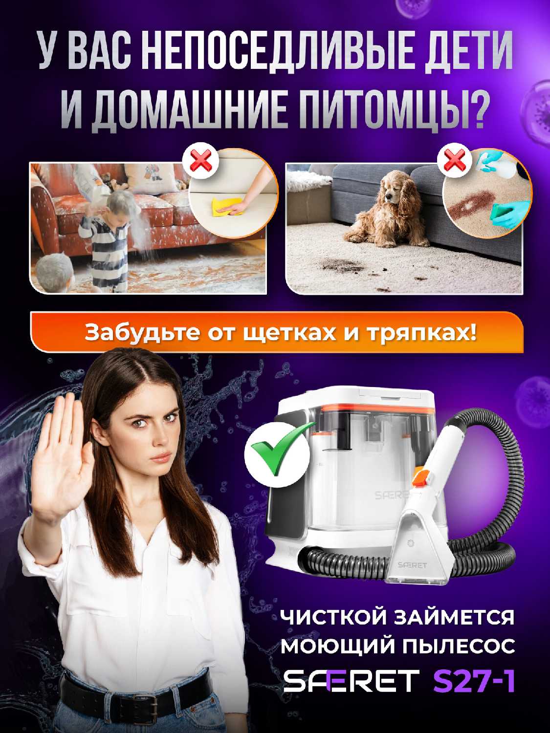 Обзоры и руководства на Saferet Моющий пылесос для мебели и химчистки с функцией пара