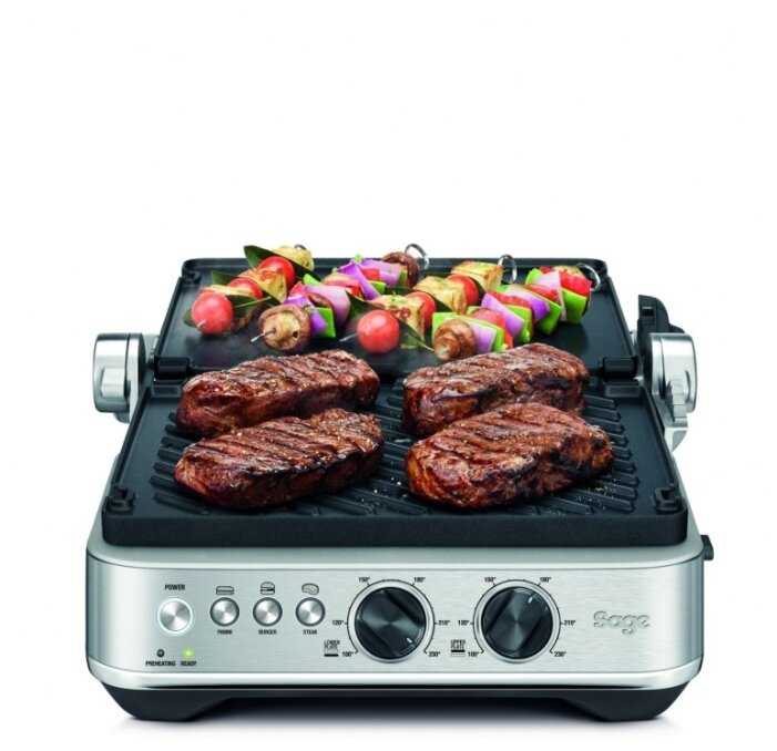| Особенности : | антипригарное покрытие, контактный гриль, поддон для сбора жира, регулировка высоты верхней панели, решетка |