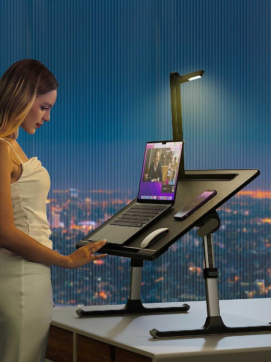 - + Лучший столик который у меня был. Долго не решалась из-за цены, но он того стоит. Высоко качества материалы, удобно регулировать , хорошая подсветка , при наклонной поверхности ноутбук и телефон не съезжают.