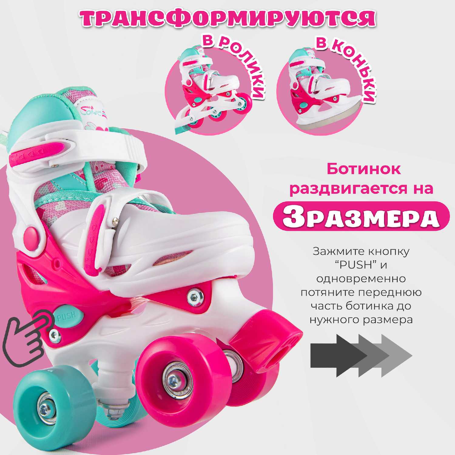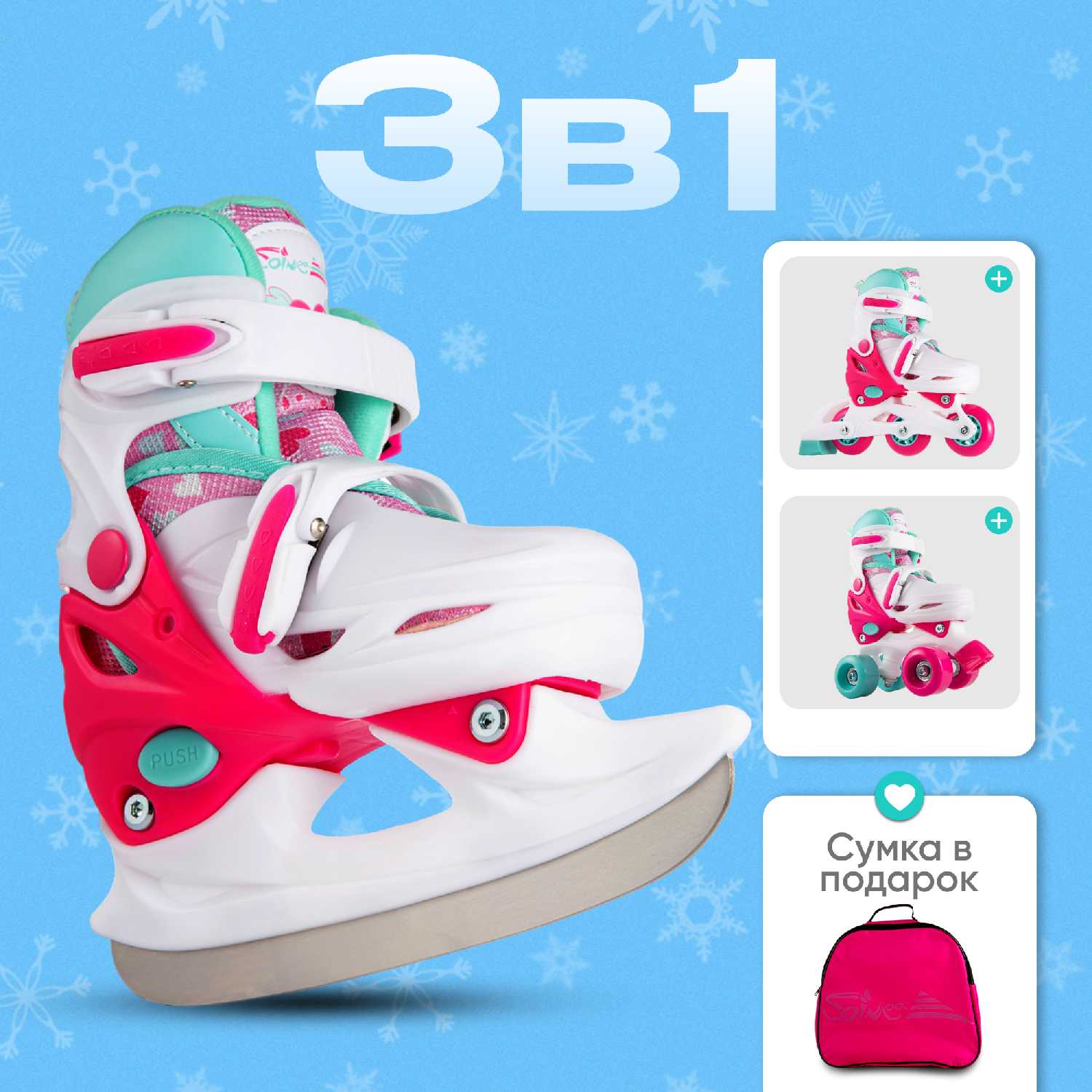 Главное преимущество — универсальность и экономия. Вы получаете три типа спортивной обуви в одной, что позволяет ребенку попробовать разные виды активностей (катание на асфальте, на льду) без необходимости покупать отдельные специализированные модели. Это особенно актуально для быстрорастущих детей, чьи интересы могут меняться. -