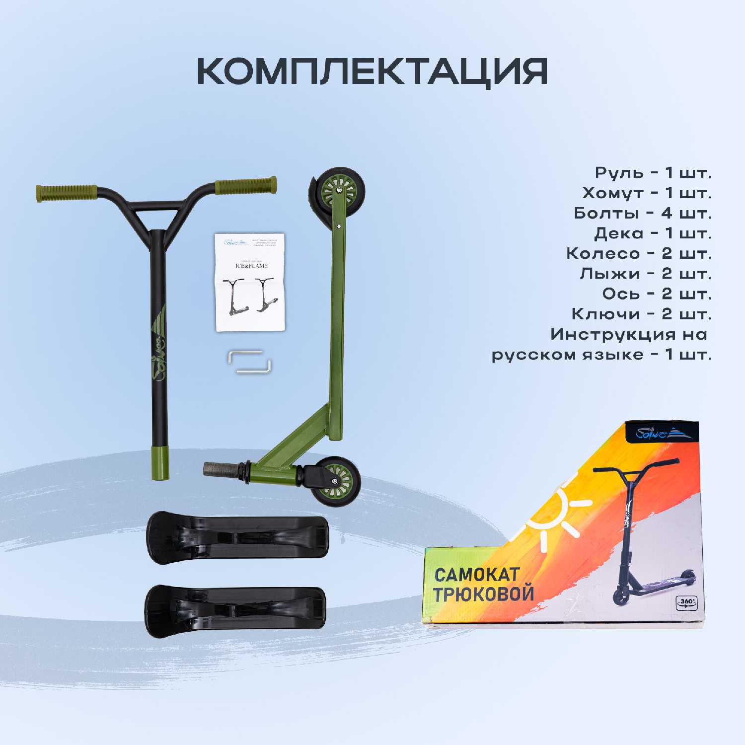 - + Отличный самокат. Собрал с легкостью. Все крутится и не скрипит