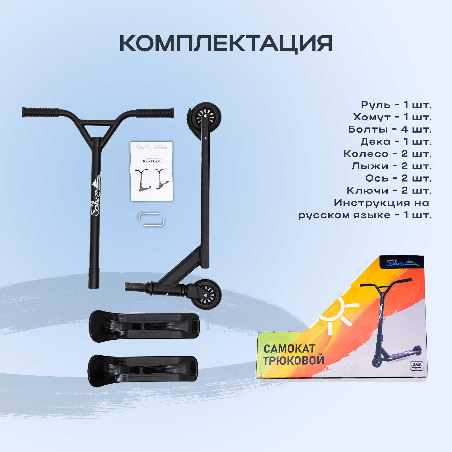 - + самокат был уже почти собранный нужно просто прикрутить руль и катаешься ( за 1-5мин)
