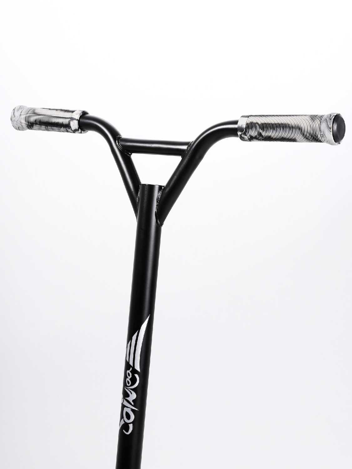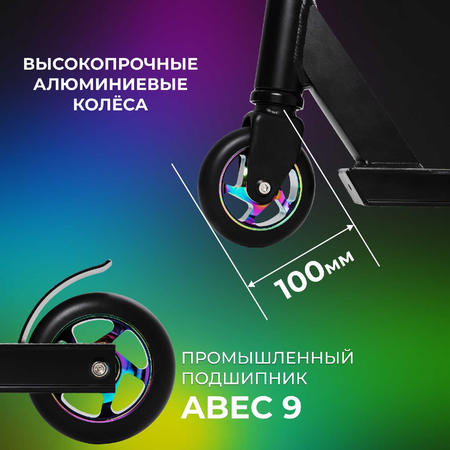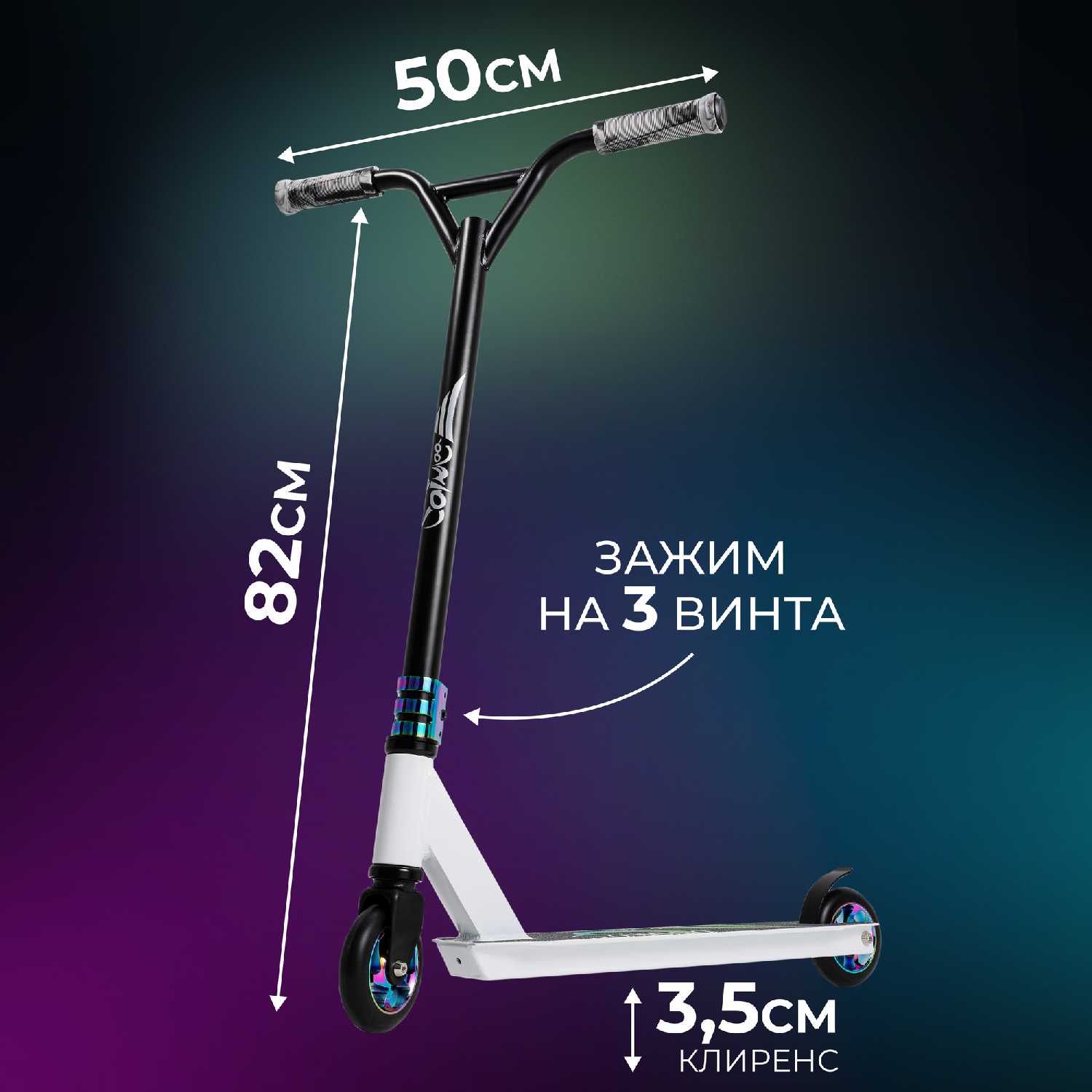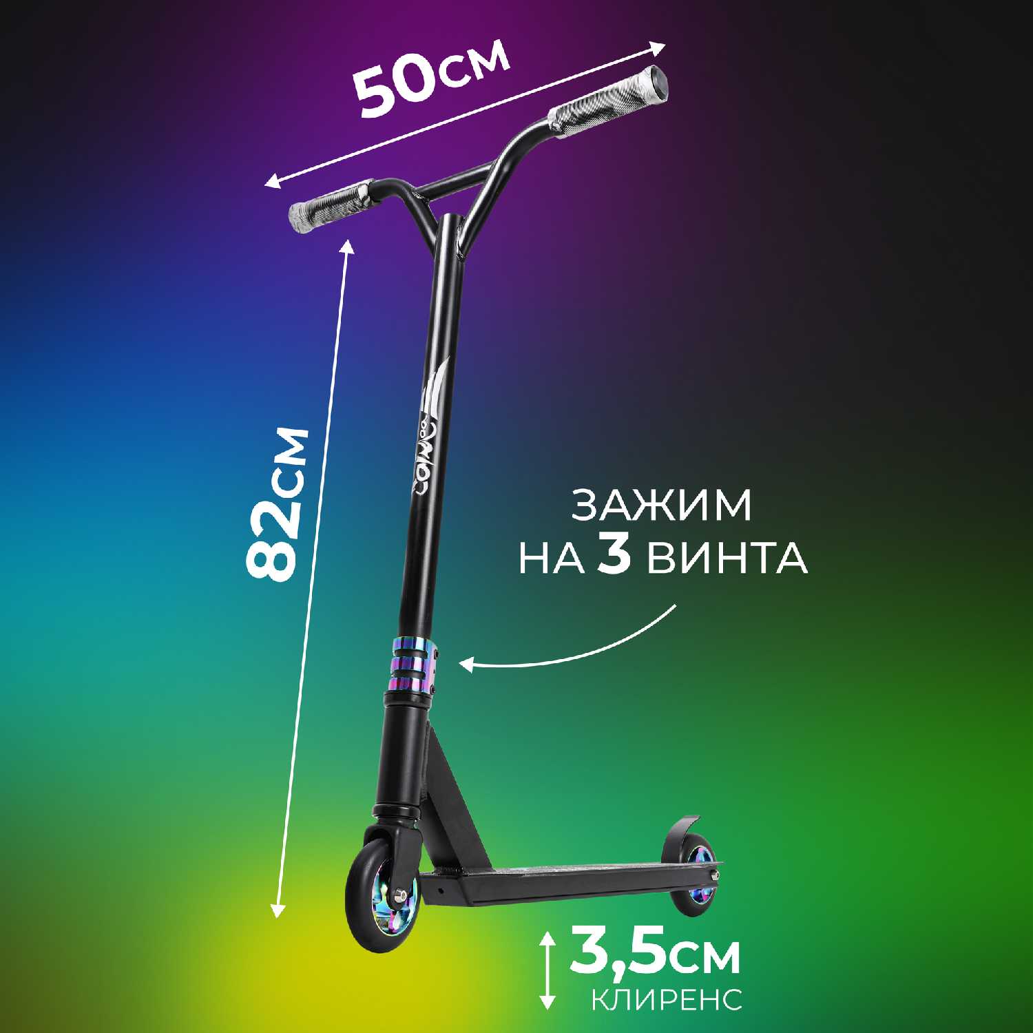 - Баланс между весом и геометрией рамы улучшает отзывчивость на руле, делая самокат подходящим для начинающих трюкачей.