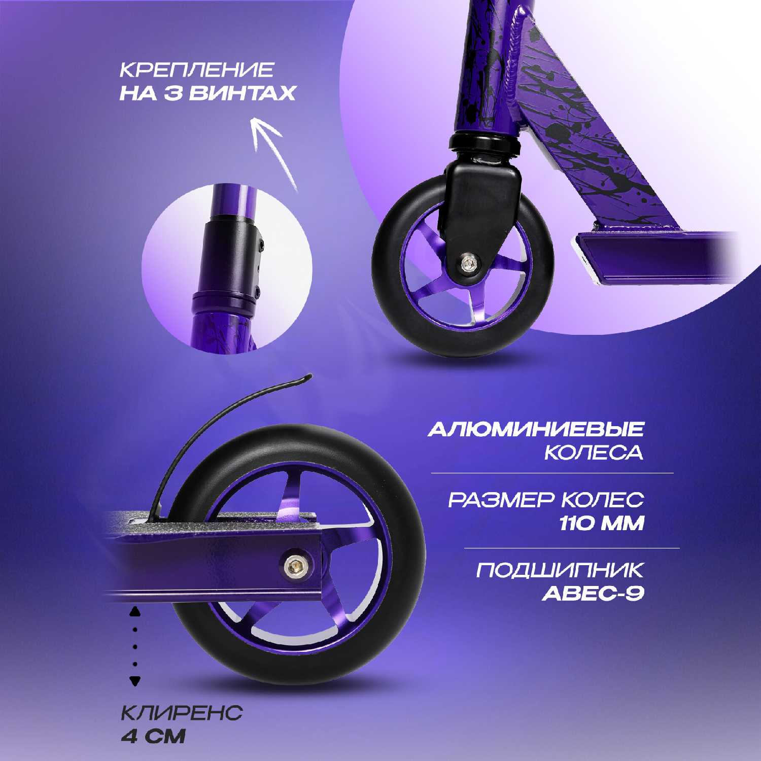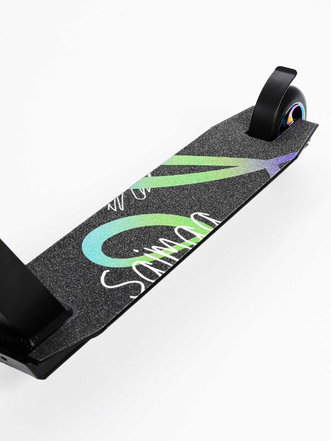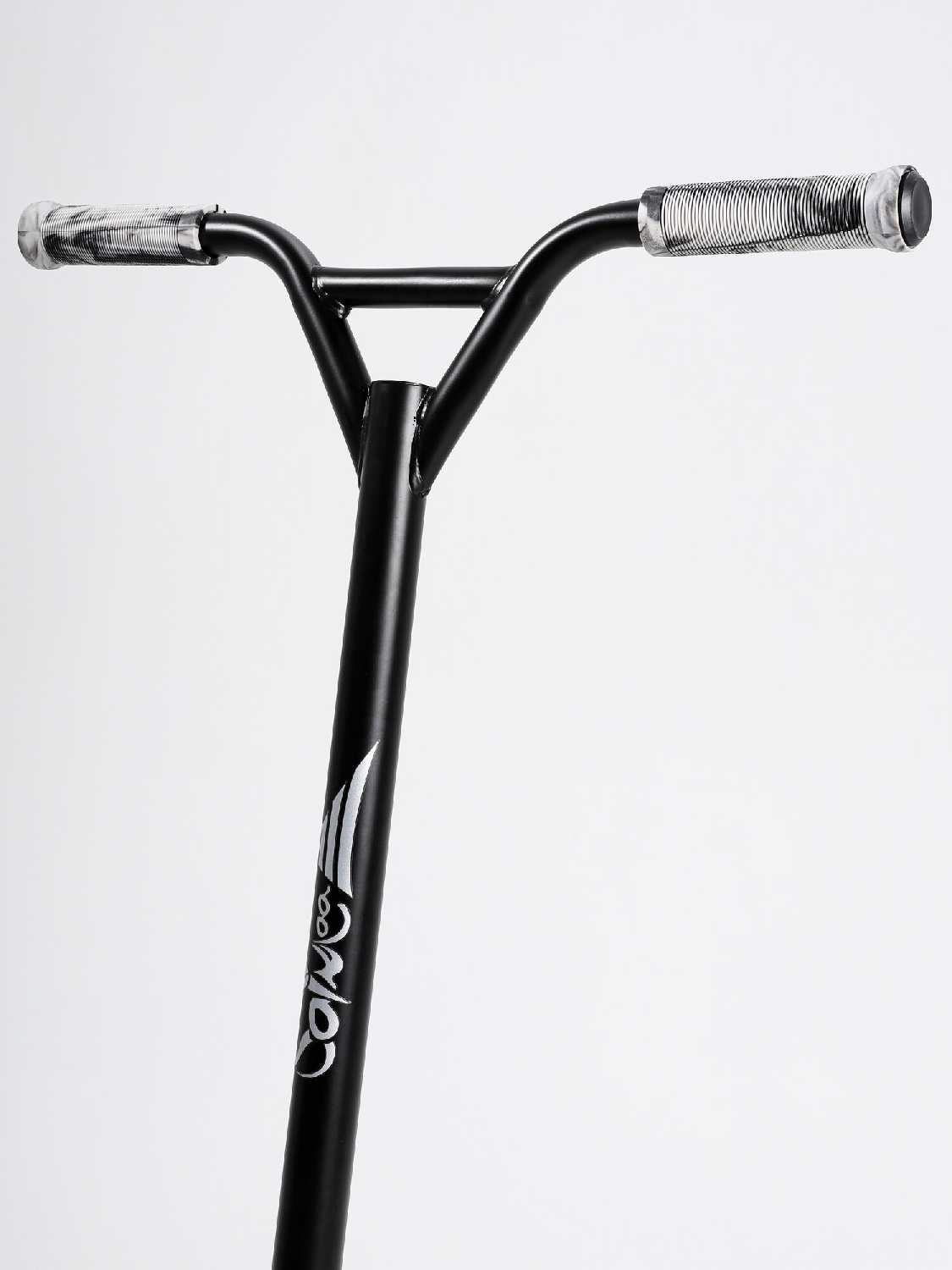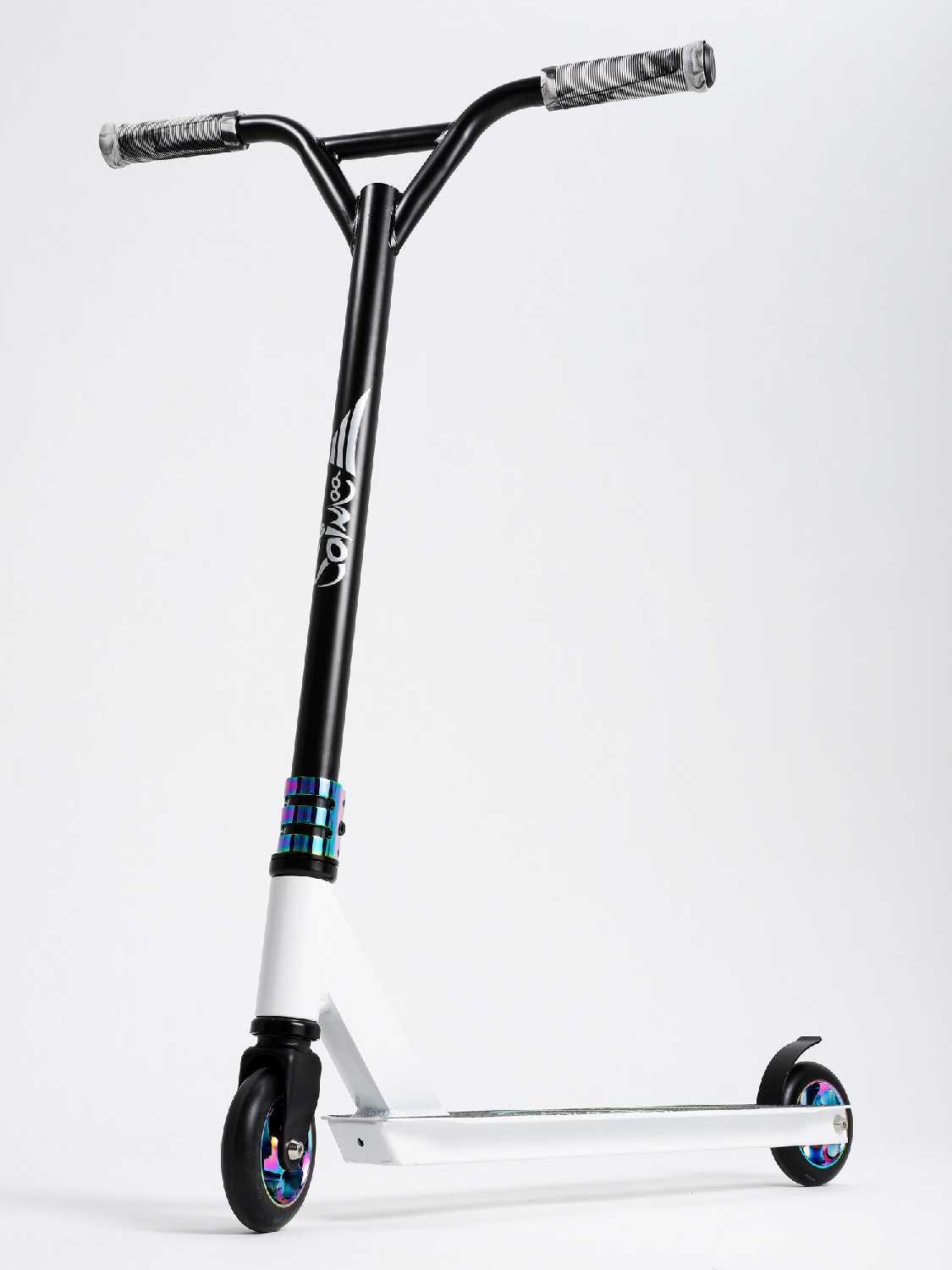 - Баланс между весом и геометрией рамы улучшает отзывчивость на руле, делая самокат подходящим для начинающих трюкачей.