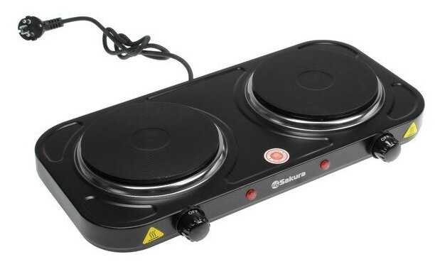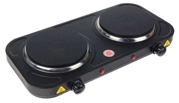 - + Отличная плитка для готовки в любых условиях, домашних, походных, беседочных. 2 конфорки, диаметром 15.5 см и мощностью 2000 ват