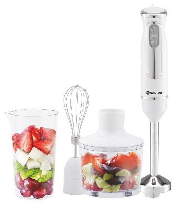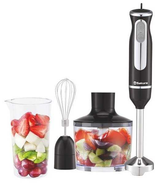 Блендер Sakura, погружная модель c мощным мотором 600 Вт является многофункциональной, удобной, простой в управлении кухонной техникой. Все это делает блендер лучшим выбором для вашей кухни. Эргономичный, легкий прибор не занимает много места на столе, я считаю его настоящей альтернативой громоздкому комбайну, идеальным помощником, который в нужную минуту всегда здорово выручает и оказывается под рукой.
