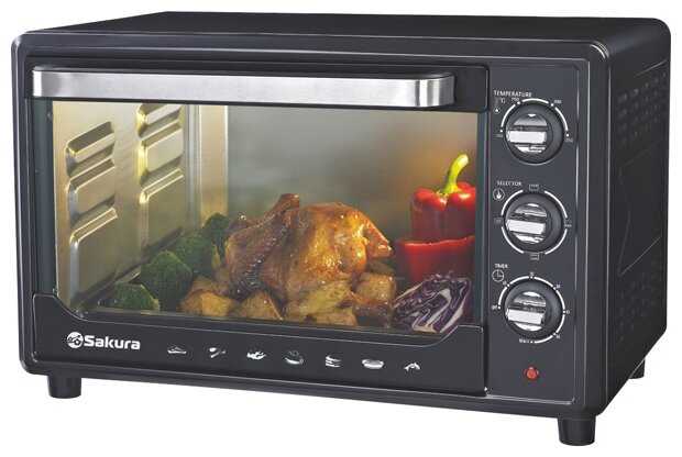 Печка хорошая, вместительная, полностью соответствует описанию. Есть 2 удобных противня, решетка. Пользоваться удобно: запекала курочку, рыбку, запеканку - все получилось отлично. Ручка в процессе использования не нагревается. Регулировка мощности очень простая и удобная. Нагревание быстрое, остывает тоже быстро, можно готовить блюда с разной температурой приготовления. Покупкой довольна!