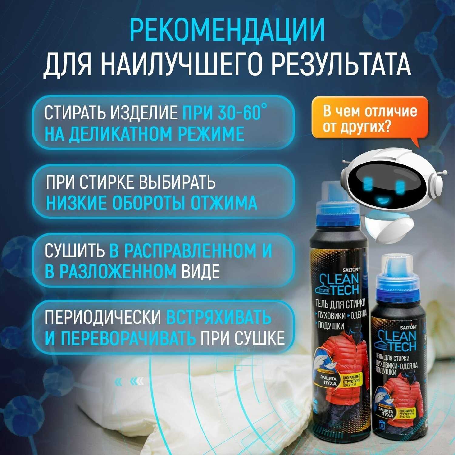 - + Хорошо отстирывает, не портит наполнитель из пуха и его свойства, цвет и форму сохраняет