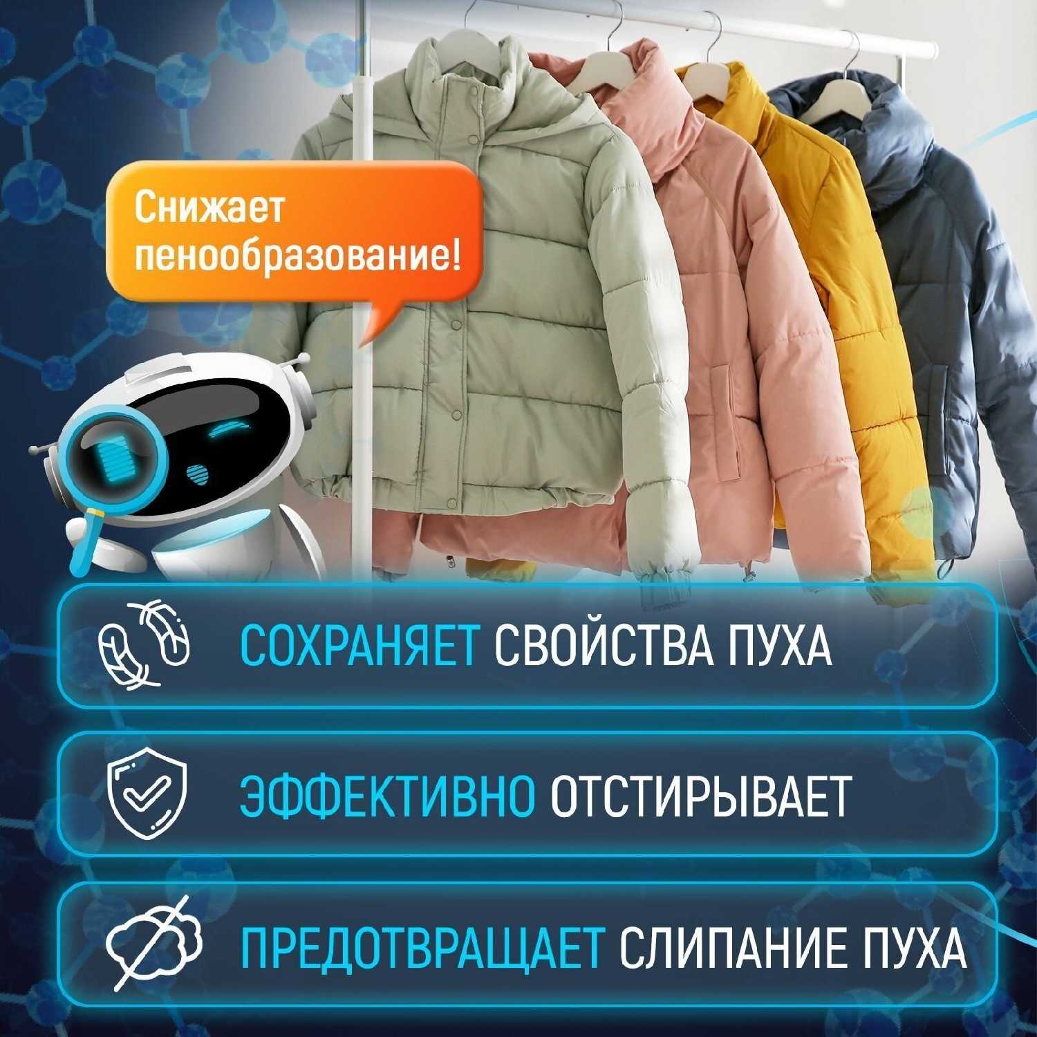 Куртки отстирывает, аромат приятный, мужу тоже нравится. И с этим гелем пух после стирки равномерно ложится внутри, только встряхиваю пуховики после сушки и руками немного помогаю распределить. Форма и цвет остаются прежними. Свойства пуха тоже сохраняются. Все как в химчистке, но удобнее и выгоднее.