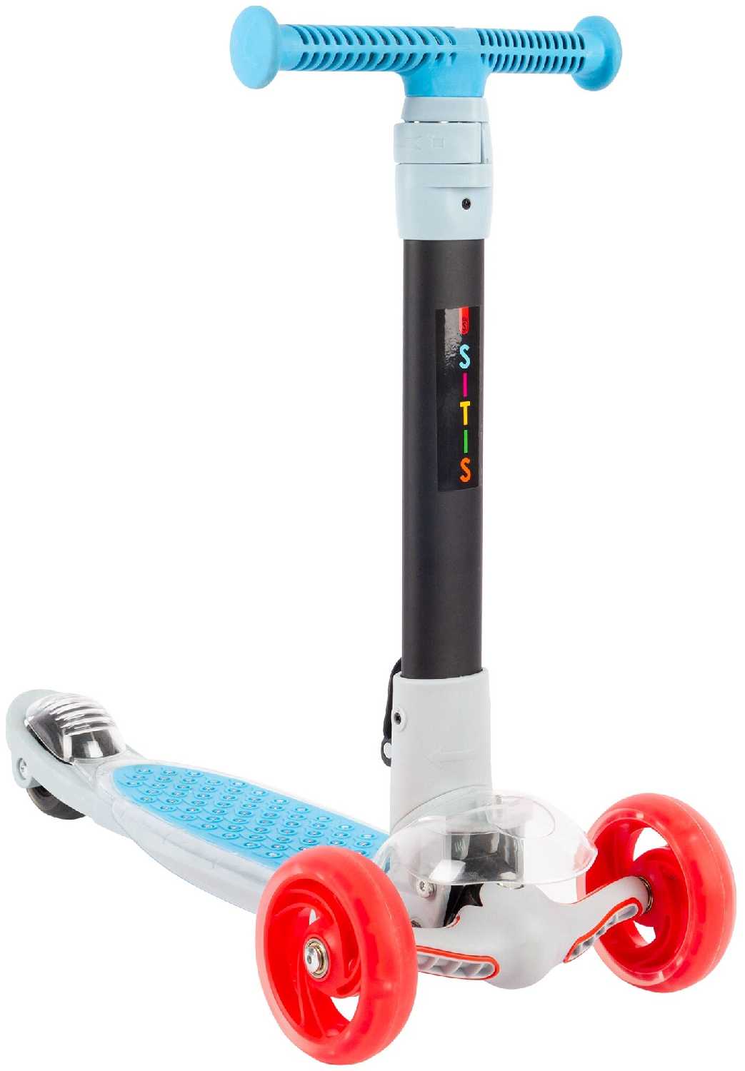 Moby Kids Самокат трехколесный "MobyKids" "DISCO" складной, 120 PU, со светом (синий)