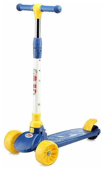 NO NAME Самокат детский трехколесный, складной, светящиеся колеса, дека с подсветкой и мелодией, высота руля регулируется, желтый, U066833Y