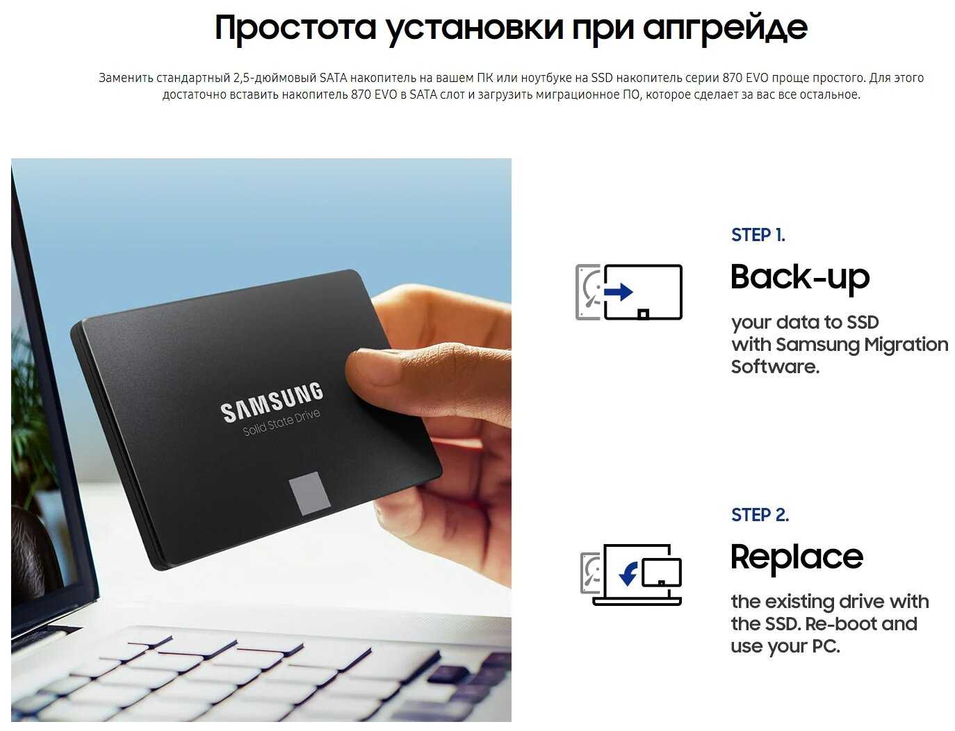 Первые SSDшники от "Samsung" на 1Тб и 500Гб покупал ещё в 2020 году, отлично работают один на компьтере, а второй в тонком ноутбуке НР, значительно улучшив их быстродействие и снизив шум, особенно исключив скрежет. Поэтому решил всю технику перевести на SSD.
