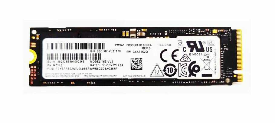 PM9A1 — OEM-аналог 980 Pro с идентичными характеристиками: контроллером Elpis, 176-слойной памятью и скоростью до 7000 МБ/с. Отличия — отсутствие розничной упаковки, ограниченная гарантия (часто 1 год) и несовместимость с Samsung Magician. Качество сборки и компонентов аналогично брендовым моделям, что подтверждается тестами на подлинность через серийные номера. -